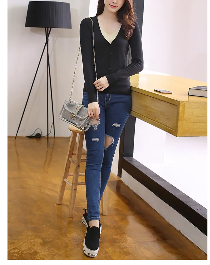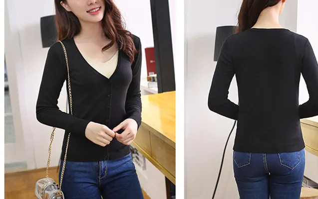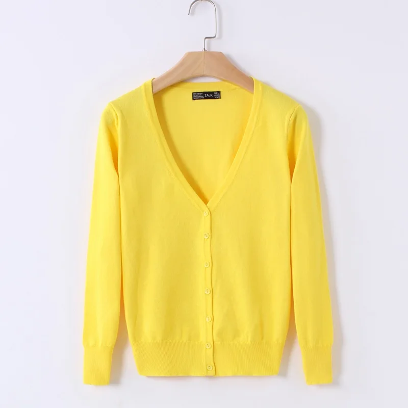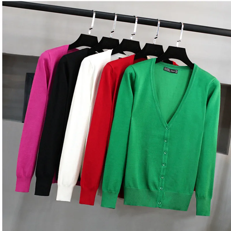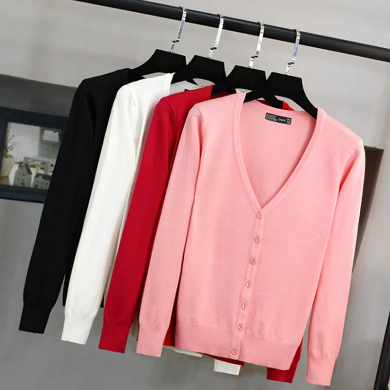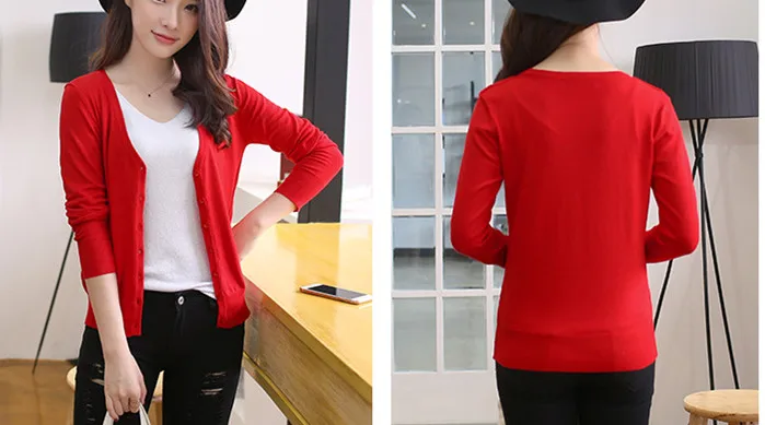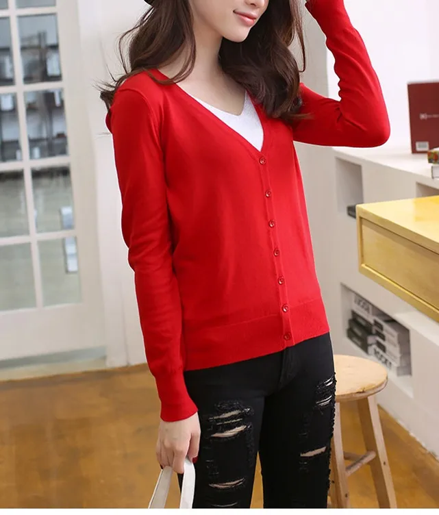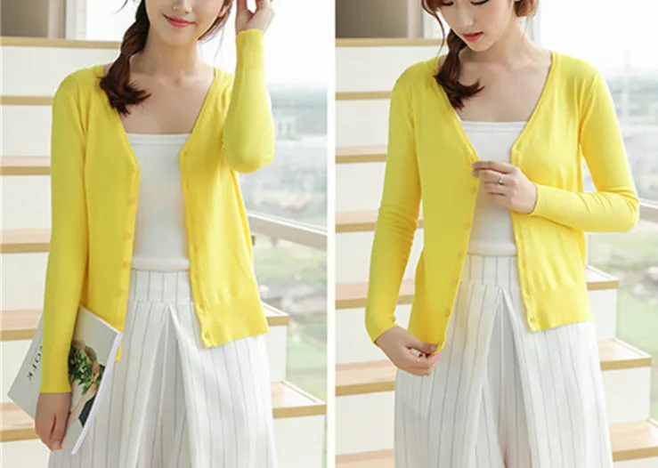 Fashion Casual Women Cardigan Crochet Knitted Short Sweaters Coat V- Neck Sweet Cardigans Tops Long Sleeve Slim Solid Color