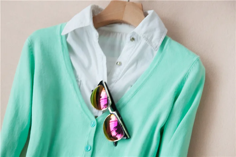 Fashion Casual Women Cardigan Crochet Knitted Short Sweaters Coat V- Neck Sweet Cardigans Tops Long Sleeve Slim Solid Color