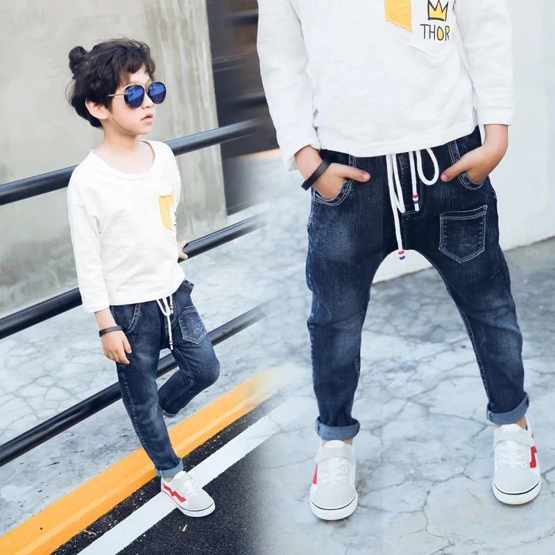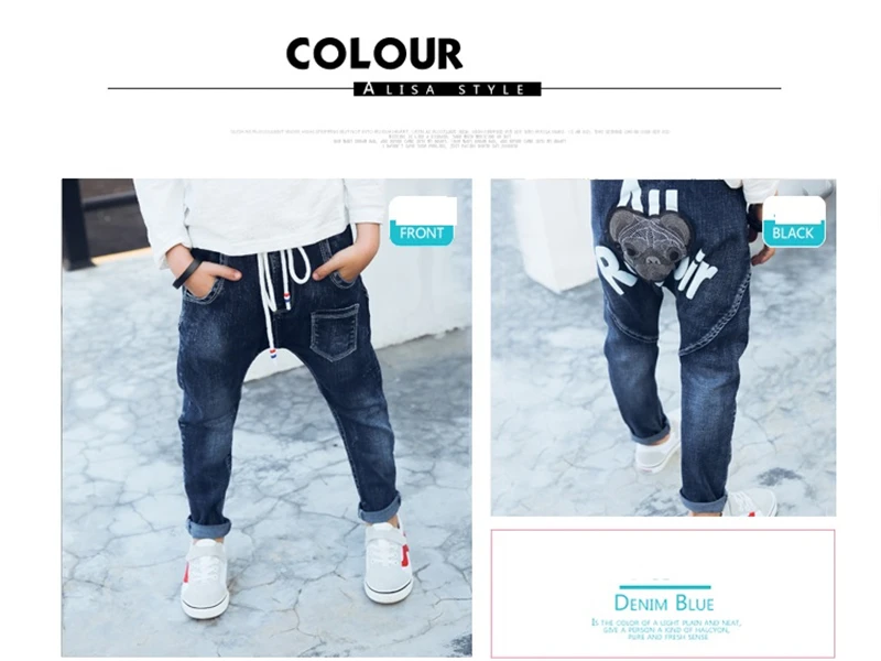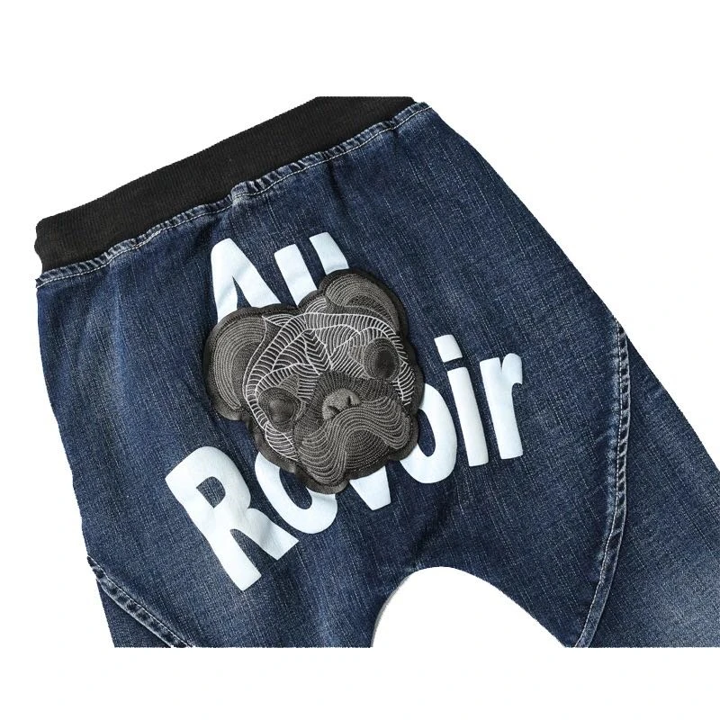 Fashion Children’s jeans spring and autumn new boy jeans pants children’s casual PP embroidery dog head harem pants tide.