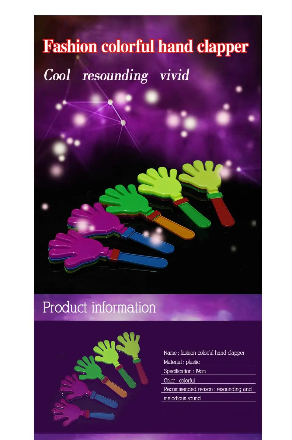 Fashion colorful hand clapper Concert party cheering props children clap clap your hands small hands clapping toy