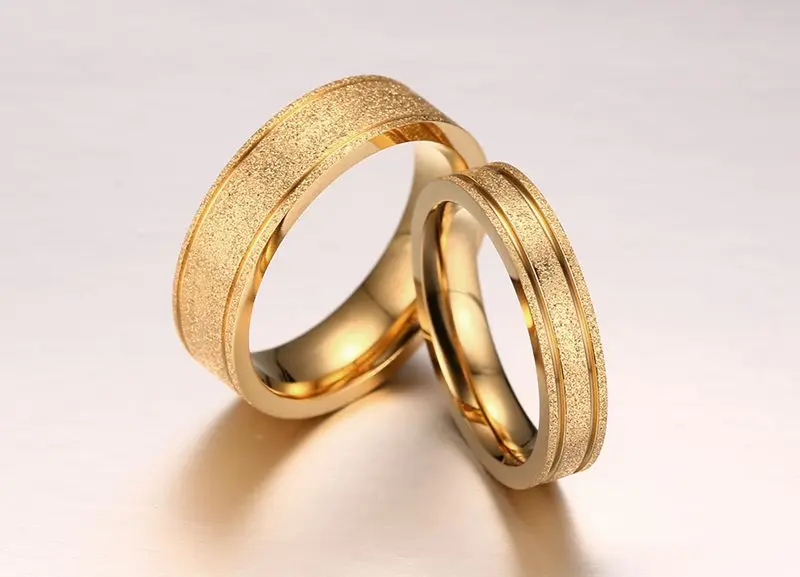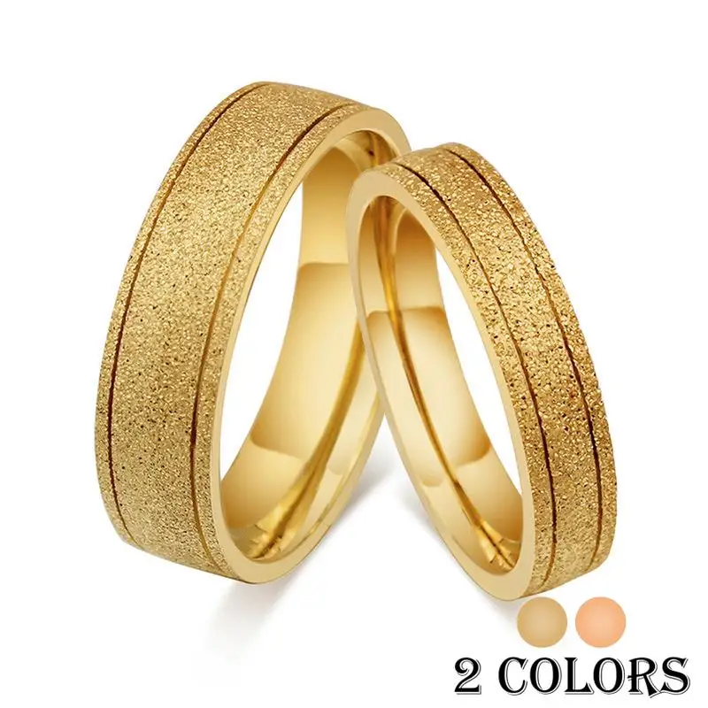 Fashion Cute Couple Ring For Men Women Gold/Rose Plated Gold Color Dull Polish Stainless Steel Rings Wedding Engagement Jewelry