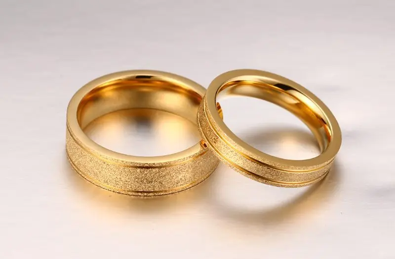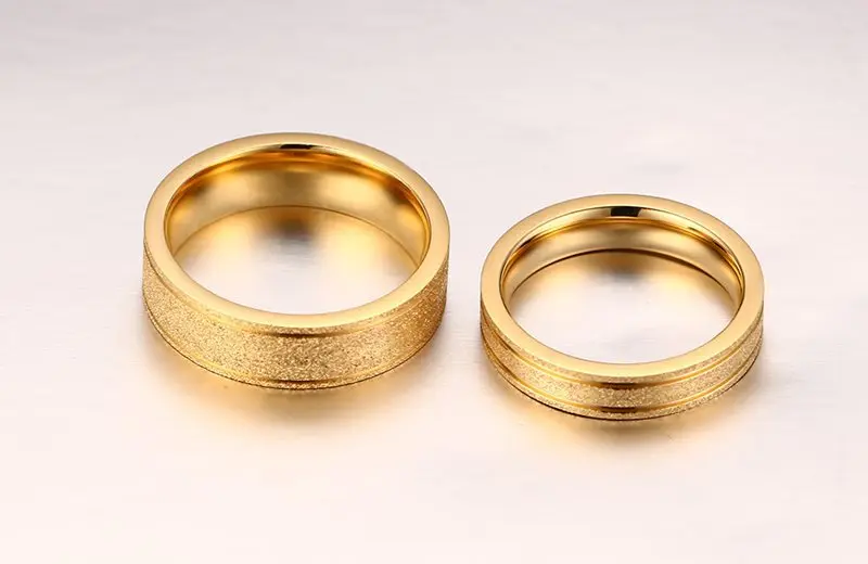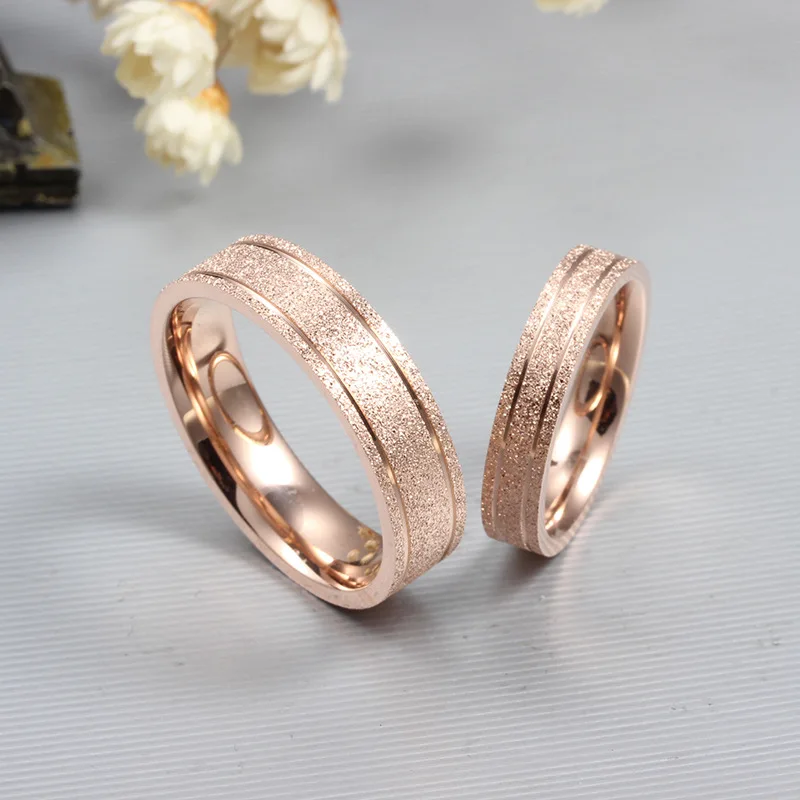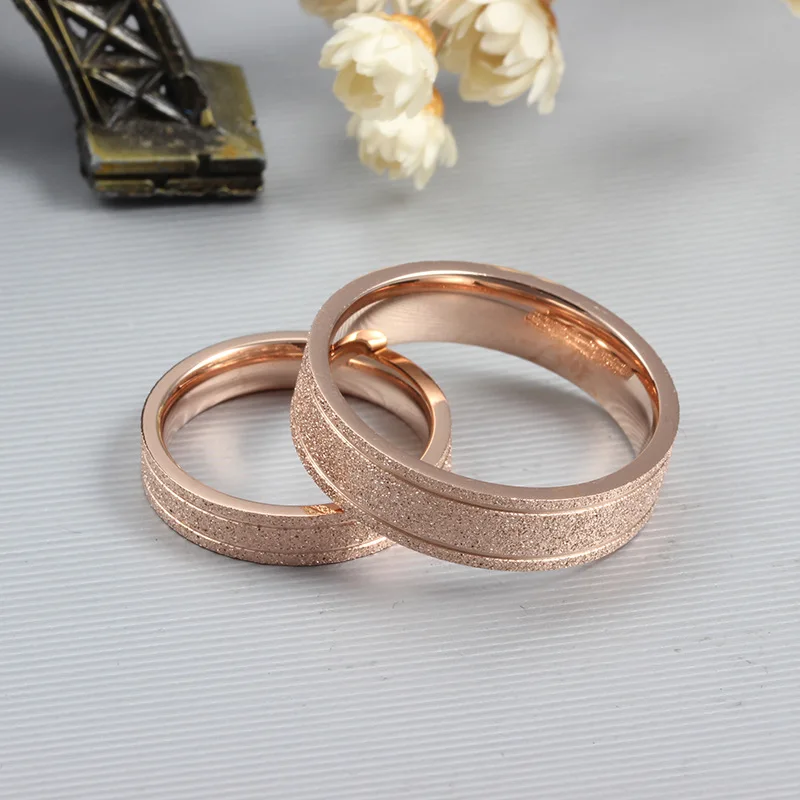 Fashion Cute Couple Ring For Men Women Gold/Rose Plated Gold Color Dull Polish Stainless Steel Rings Wedding Engagement Jewelry