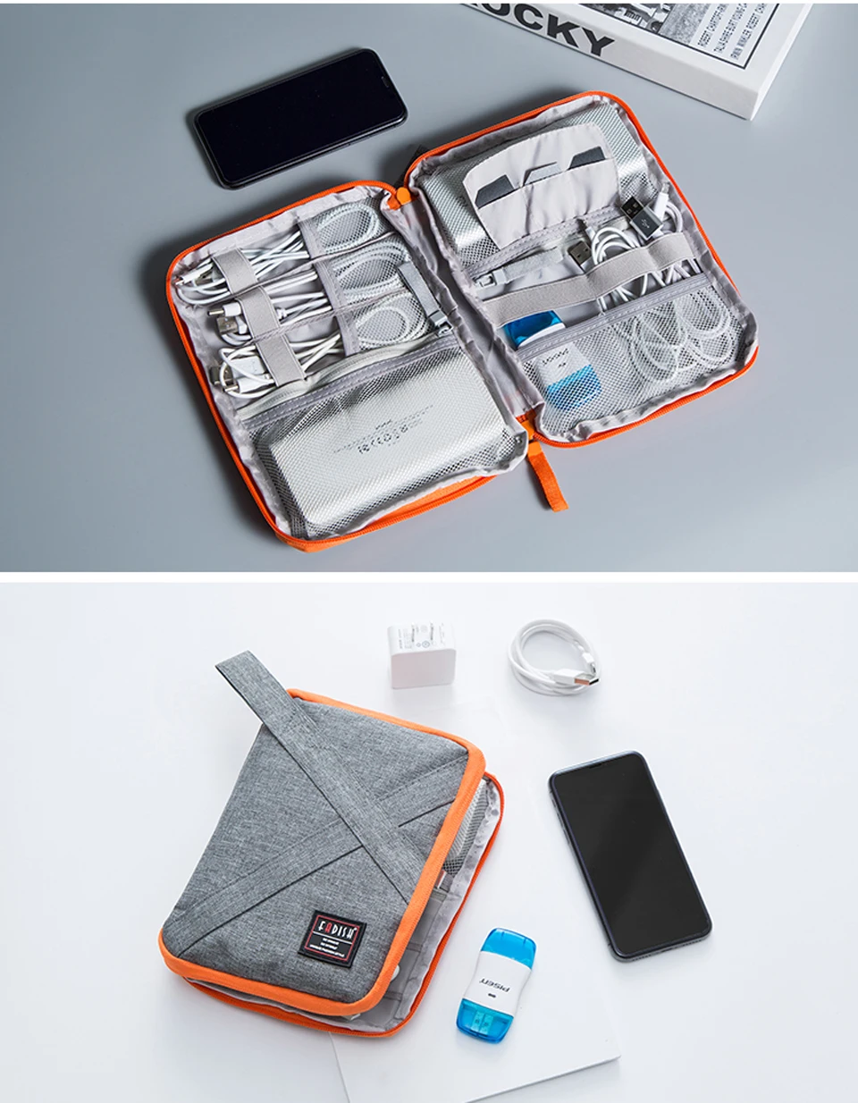 Fashion Data line receiver power supply charger U disk, multi-function portable travel bag