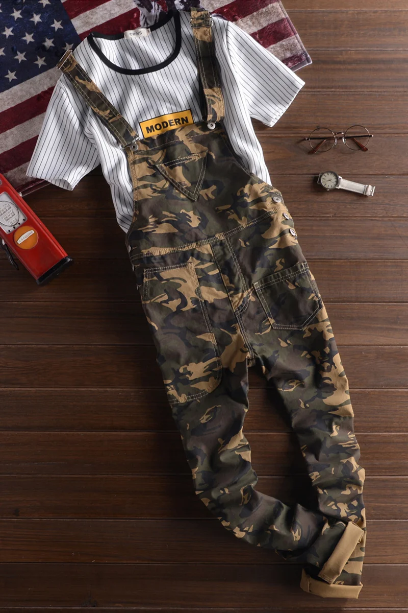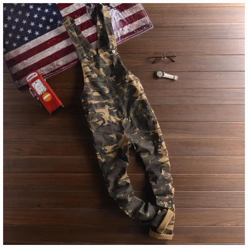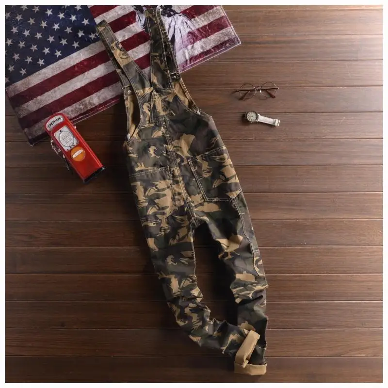 Fashion Brand Denim Jumpsuit Men Casual Pants Multi Pockets Hip-Hop Overalls for Men Camouflage Outdoors Long Trousers 021404