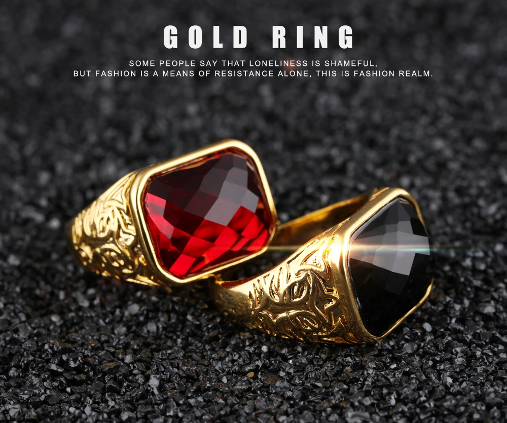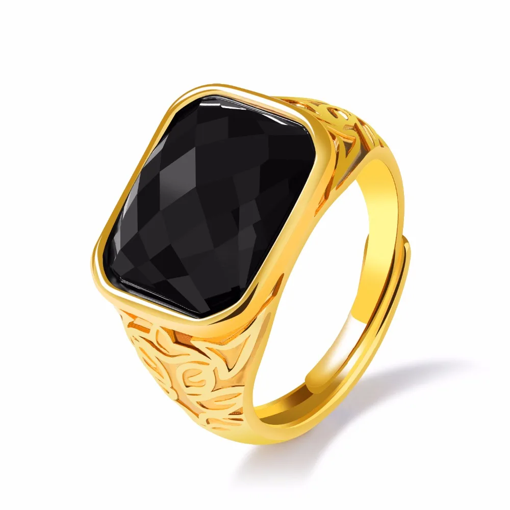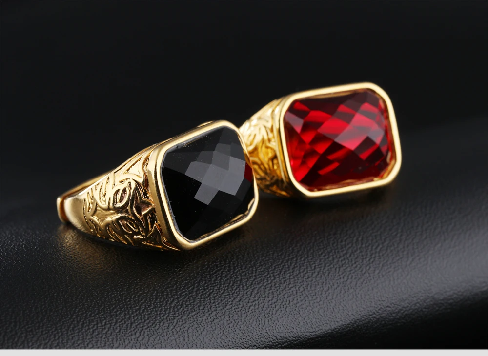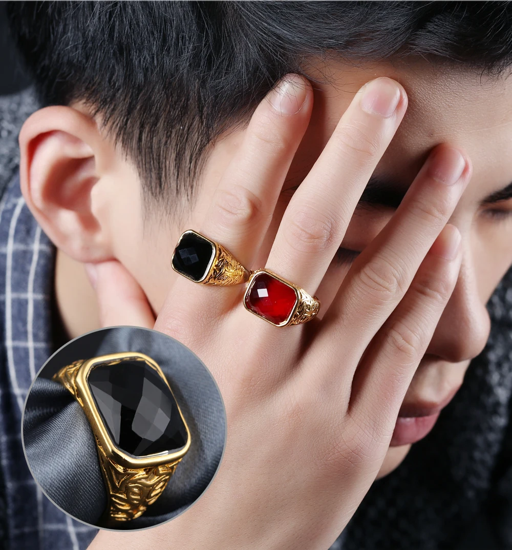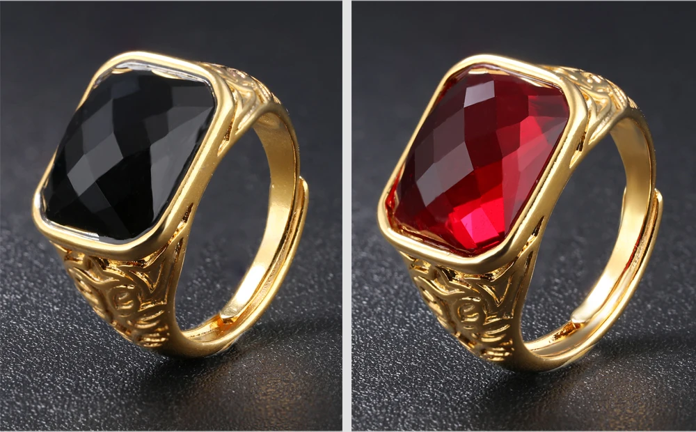 Fashion Gold Color Men Rings Semi-Precious Stone Big Ring Adjustable Red/Black Fashion Wedding Ring Man Jewelry KJ047