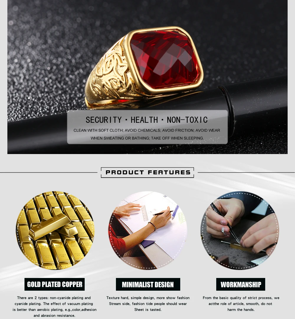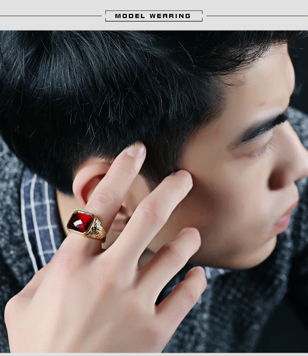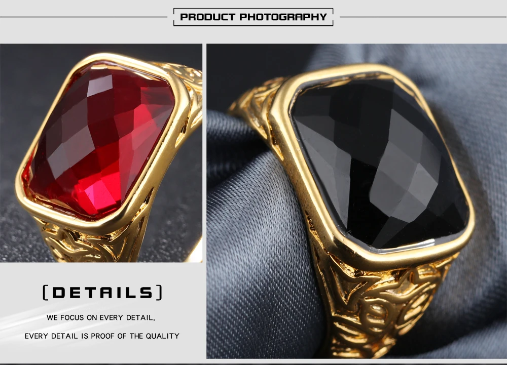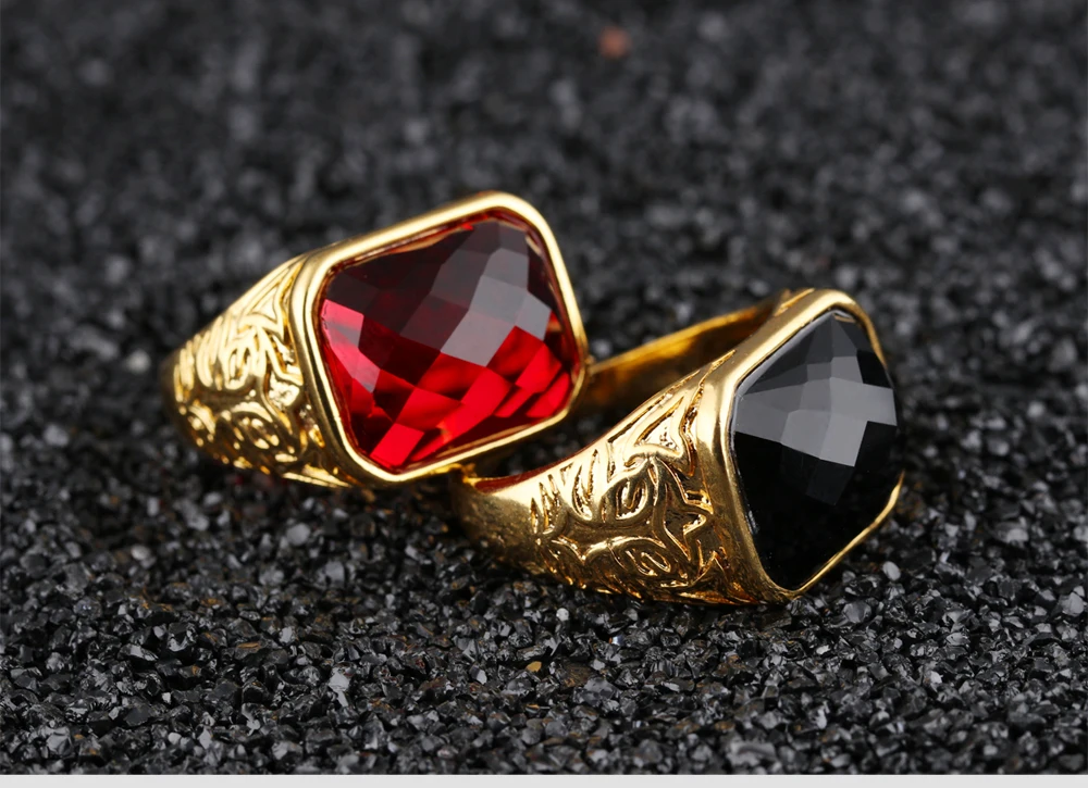 Fashion Gold Color Men Rings Semi-Precious Stone Big Ring Adjustable Red/Black Fashion Wedding Ring Man Jewelry KJ047