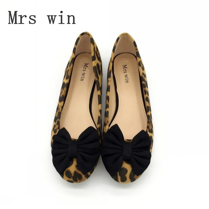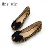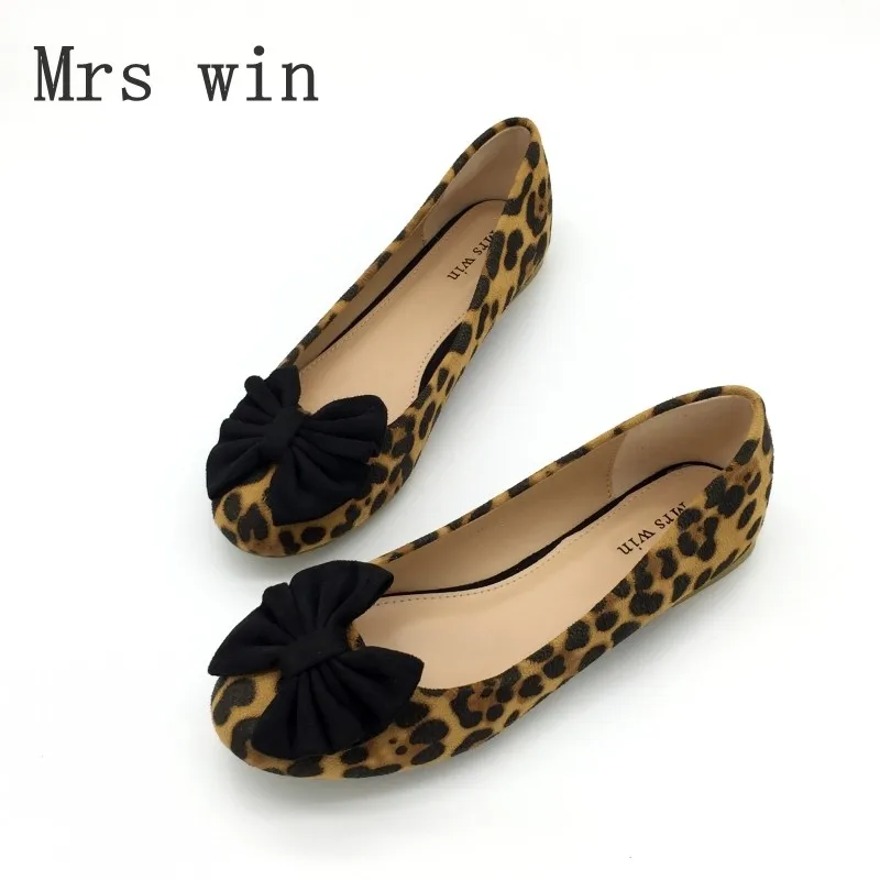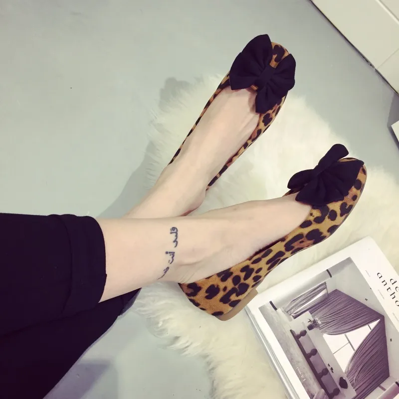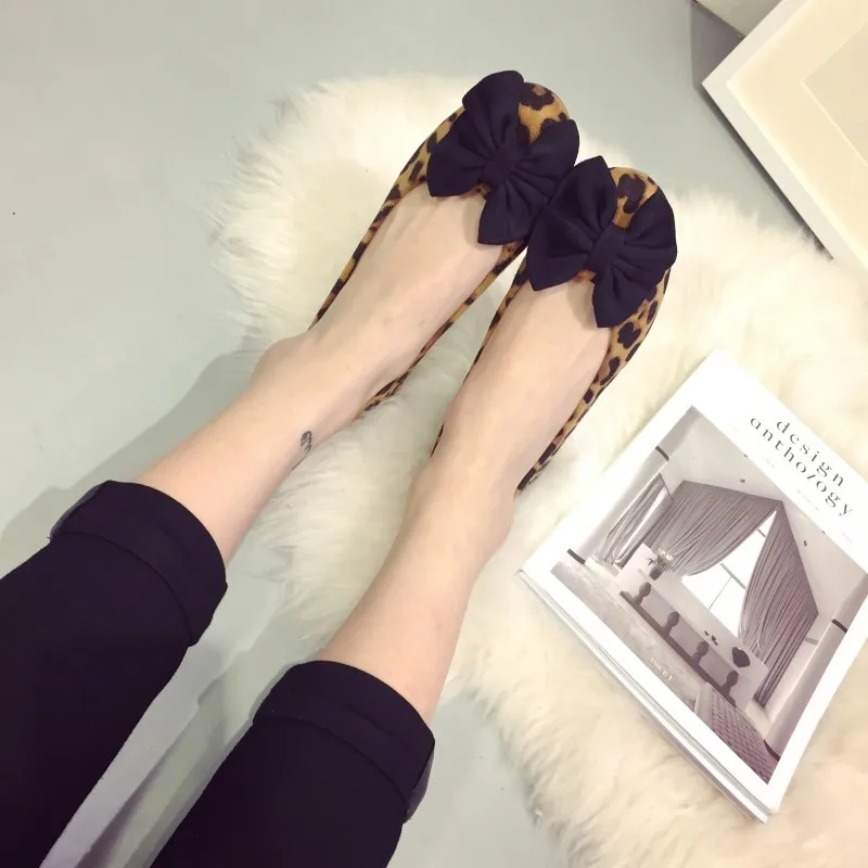 Fashion Leopard Print Bowtie Women’s Flats Spring Autumn Flock Round Toe Slip On Ballet Flats For Woman Ladies Casual Boat Shoes