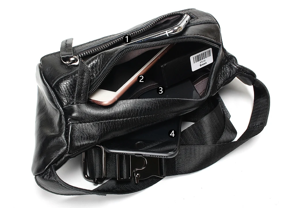 Fashion Men Waist Bag Casual Pu Leather Chain Shoulder Bags Zipper Chest Waist Bags Travel Chest Bag Fanny Waist Pack