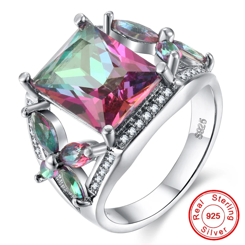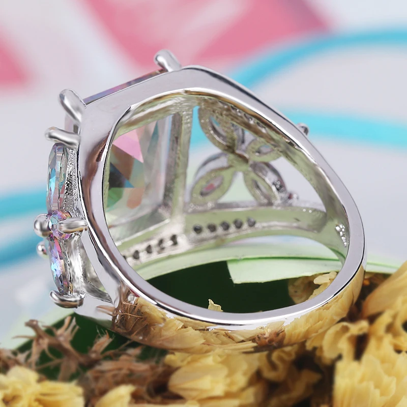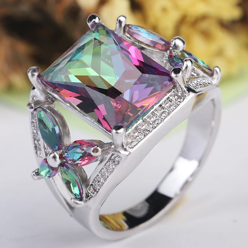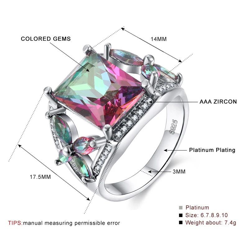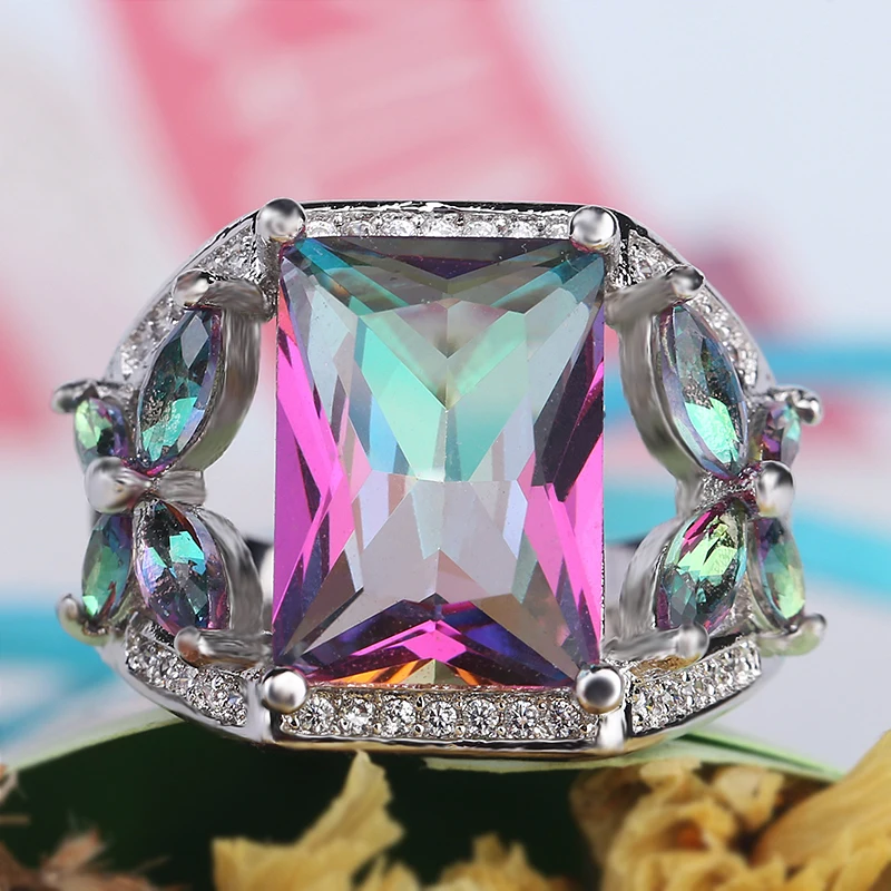Fashion Multicolor CZ Zircon Engagement Ring With White Silver Color Square Crystal Rings for Women Party Jewelry Gift mujer