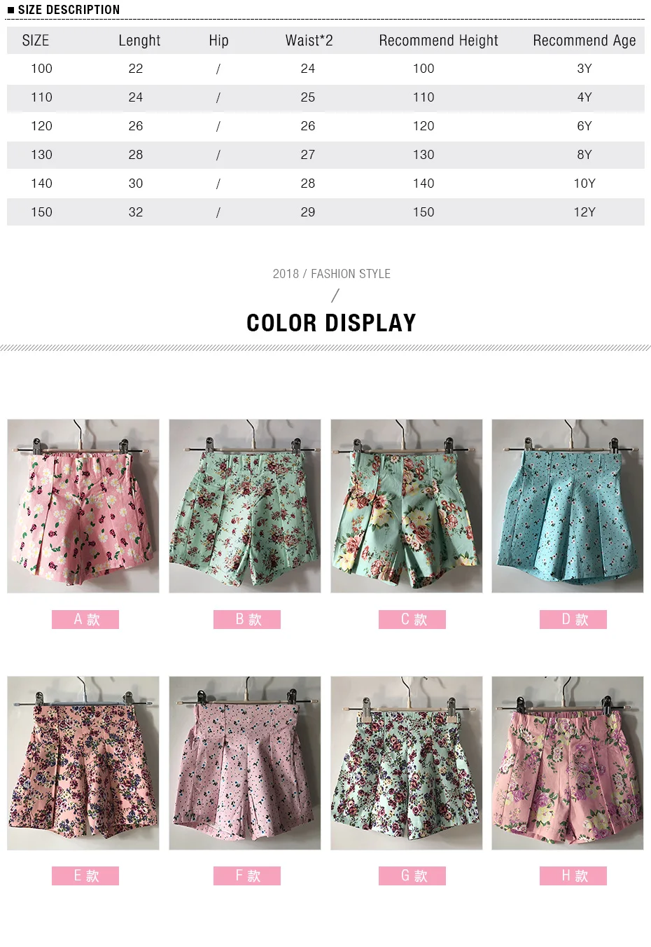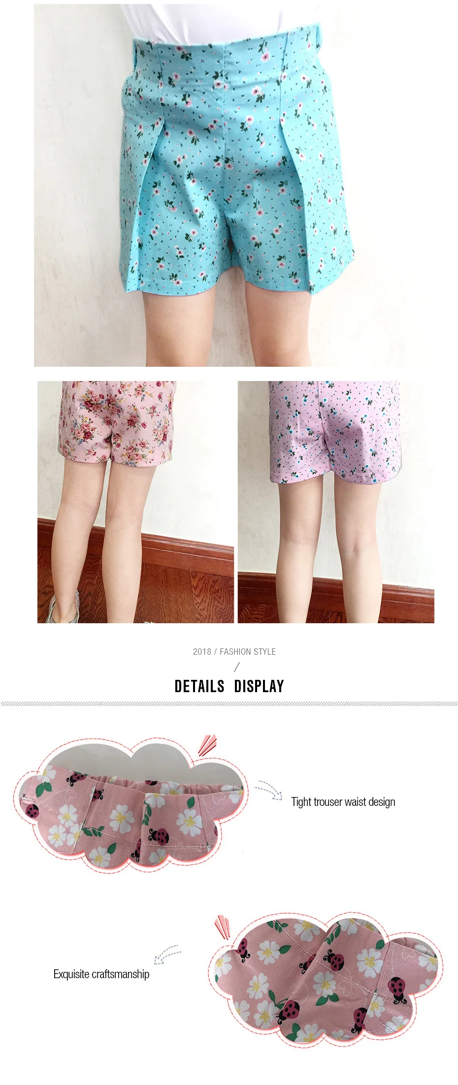 Fashion new baby girls cotton shorts multicolored Small floral printing leisure children girls short pants Trumpet leg KT-4