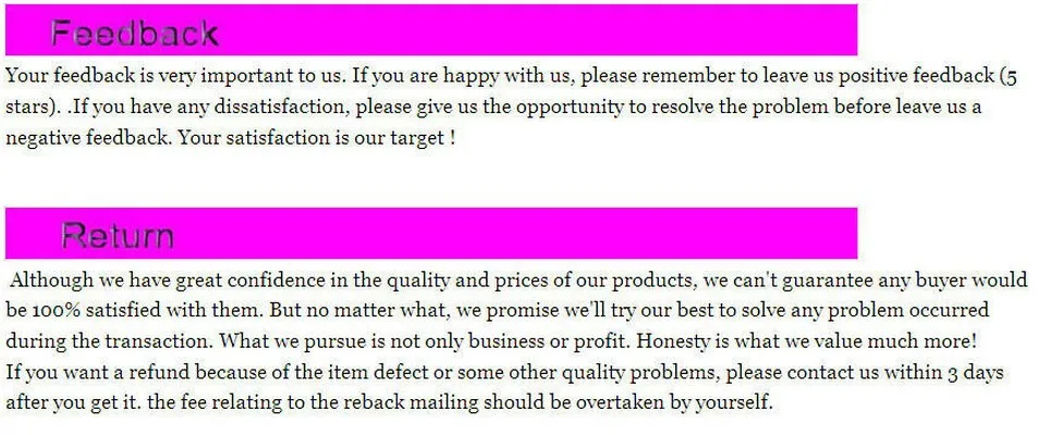 Your satisfaction is our #1 priority. Therefore, you can request a refund or reshipment for ordered products if: