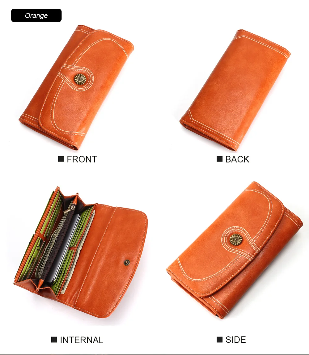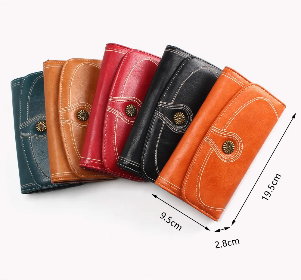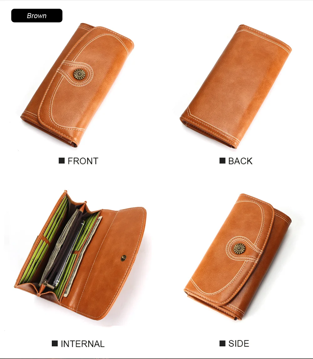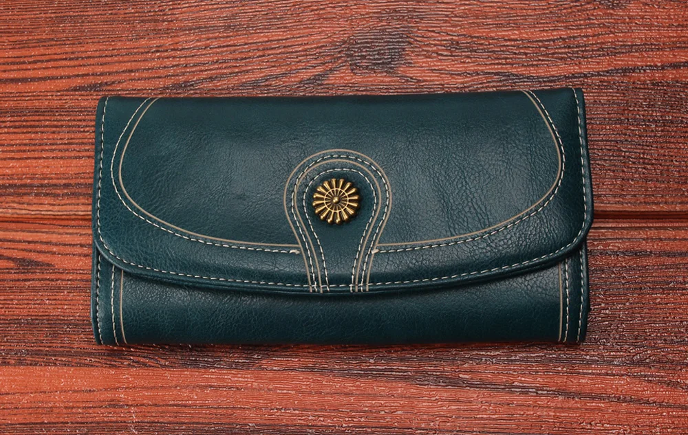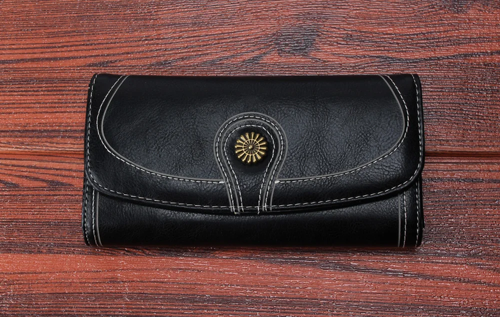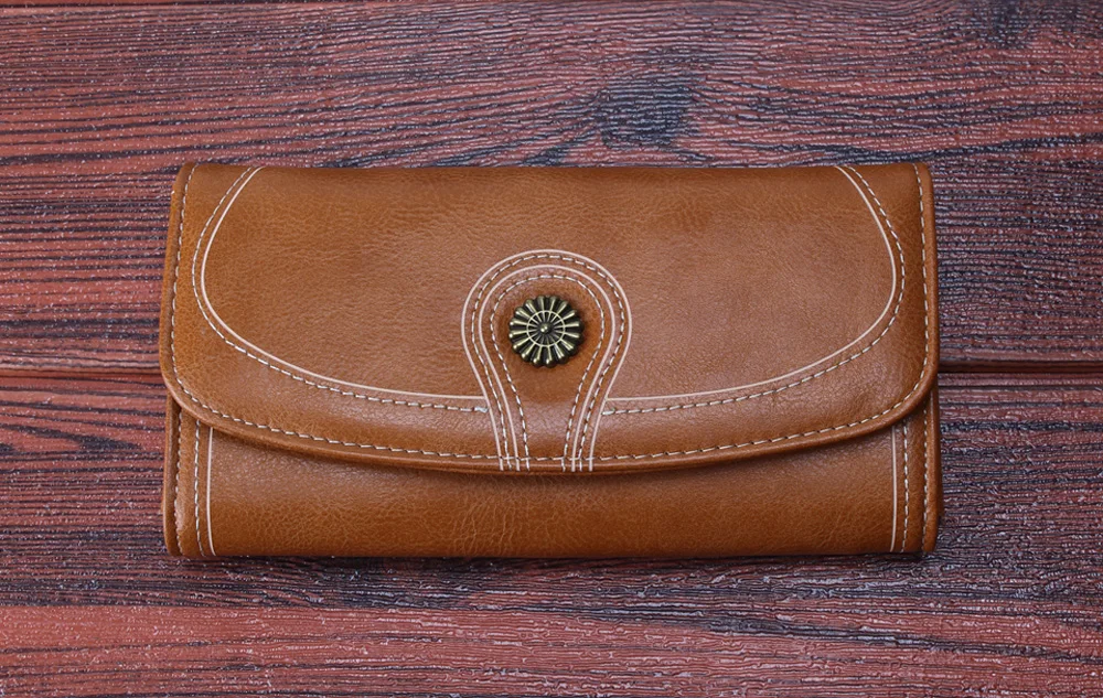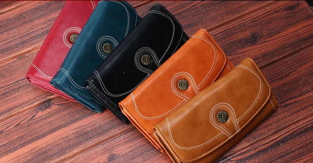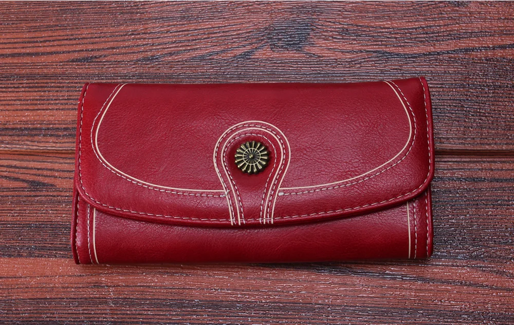 Fashion Oil Wax Pu Leather Wallet Women Leather Long Zipper Hasp Purse Vintage Beading Pearl Design Femalecoin Pocket Wallets