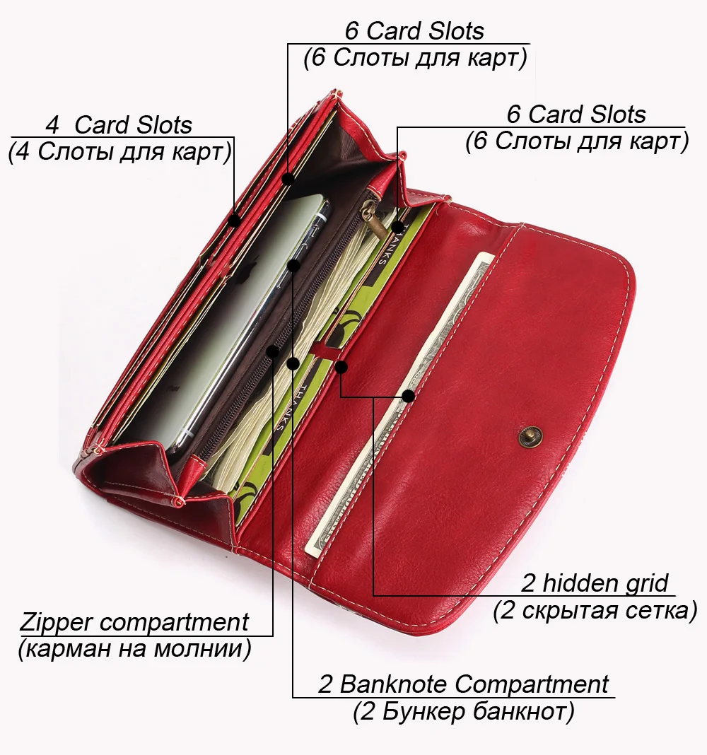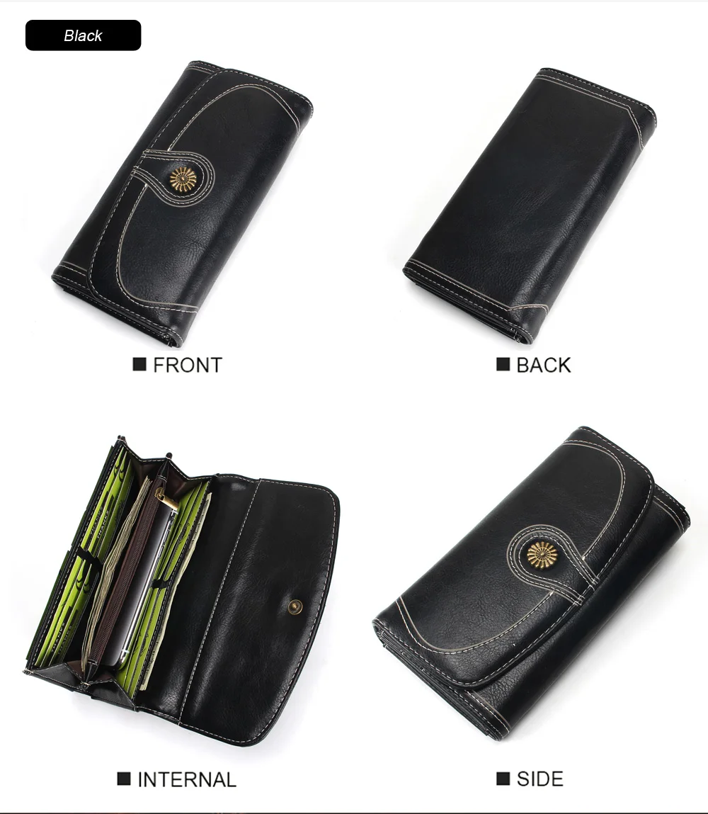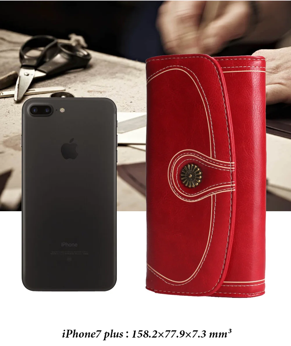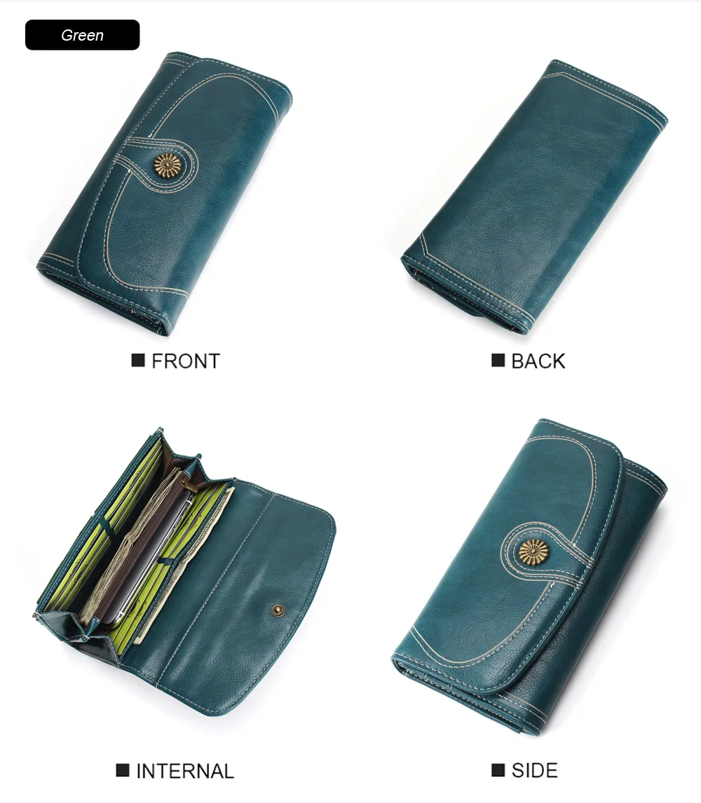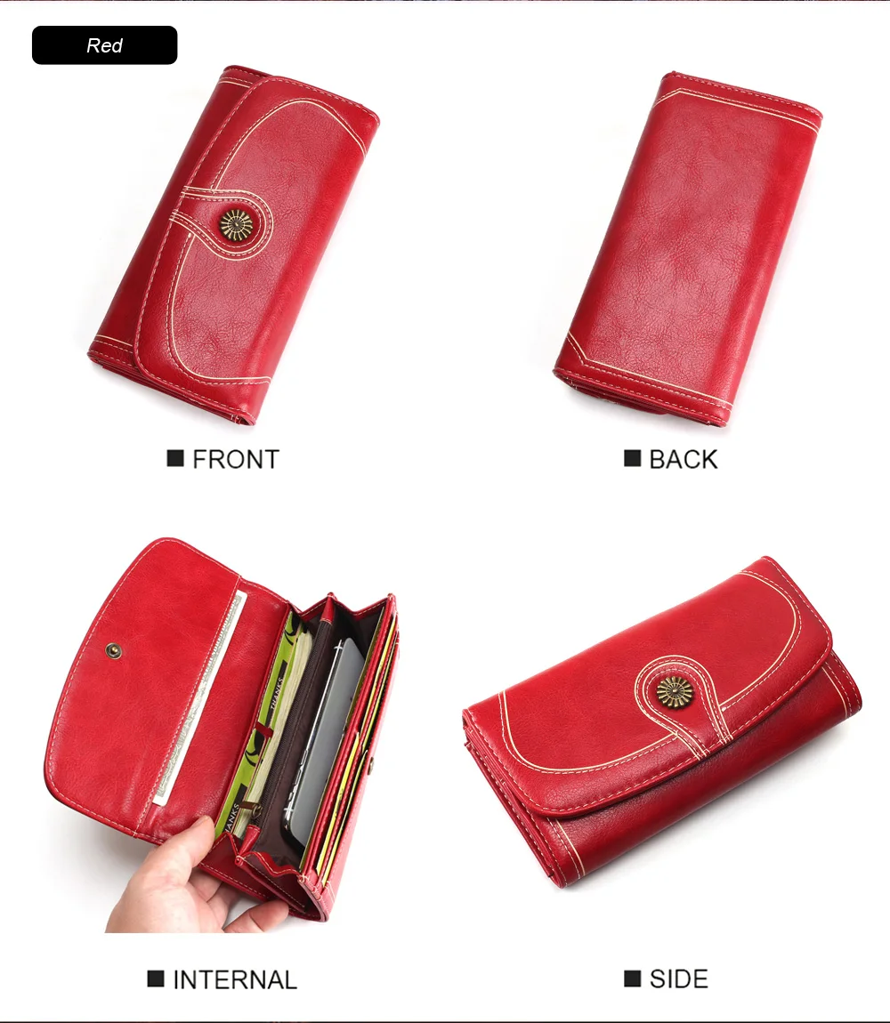 Fashion Oil Wax Pu Leather Wallet Women Leather Long Zipper Hasp Purse Vintage Beading Pearl Design Femalecoin Pocket Wallets