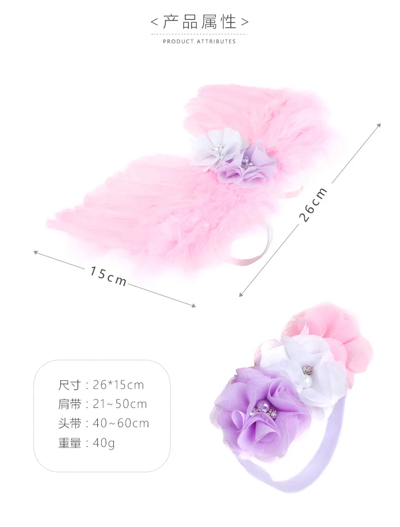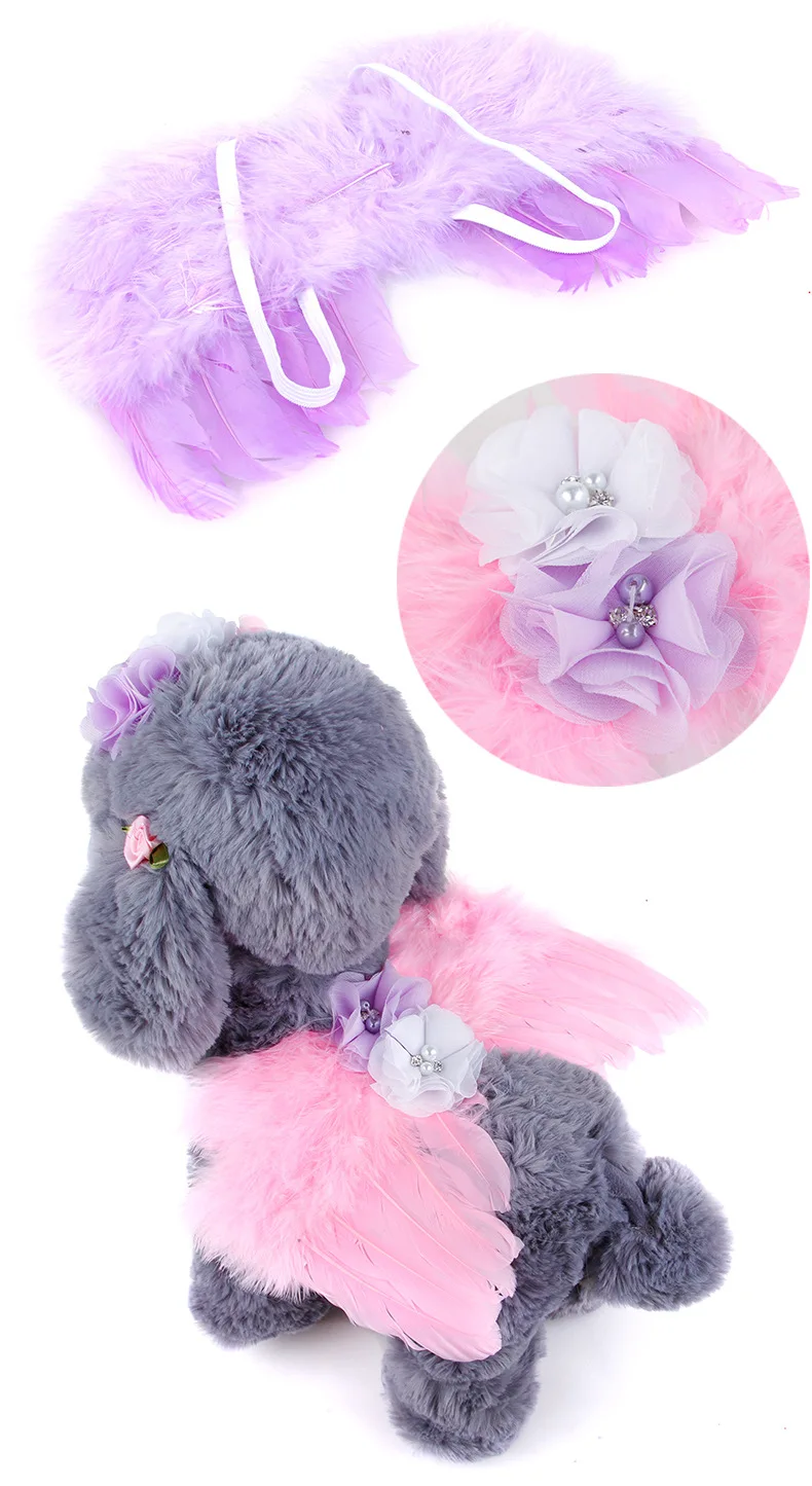 Fashion Pets Harness Animal Dog Back Angel Wings+ Flower Headdress Pet Beauty Protection Collar for Dogs