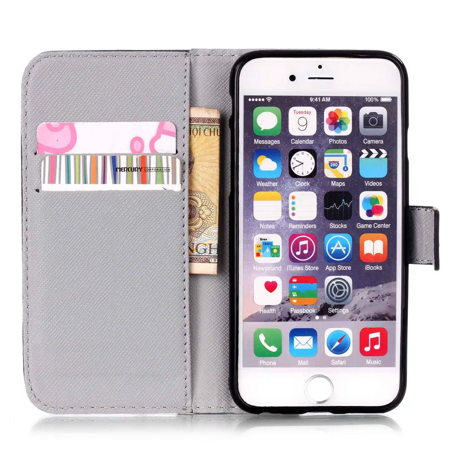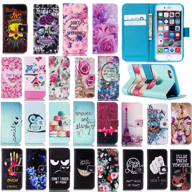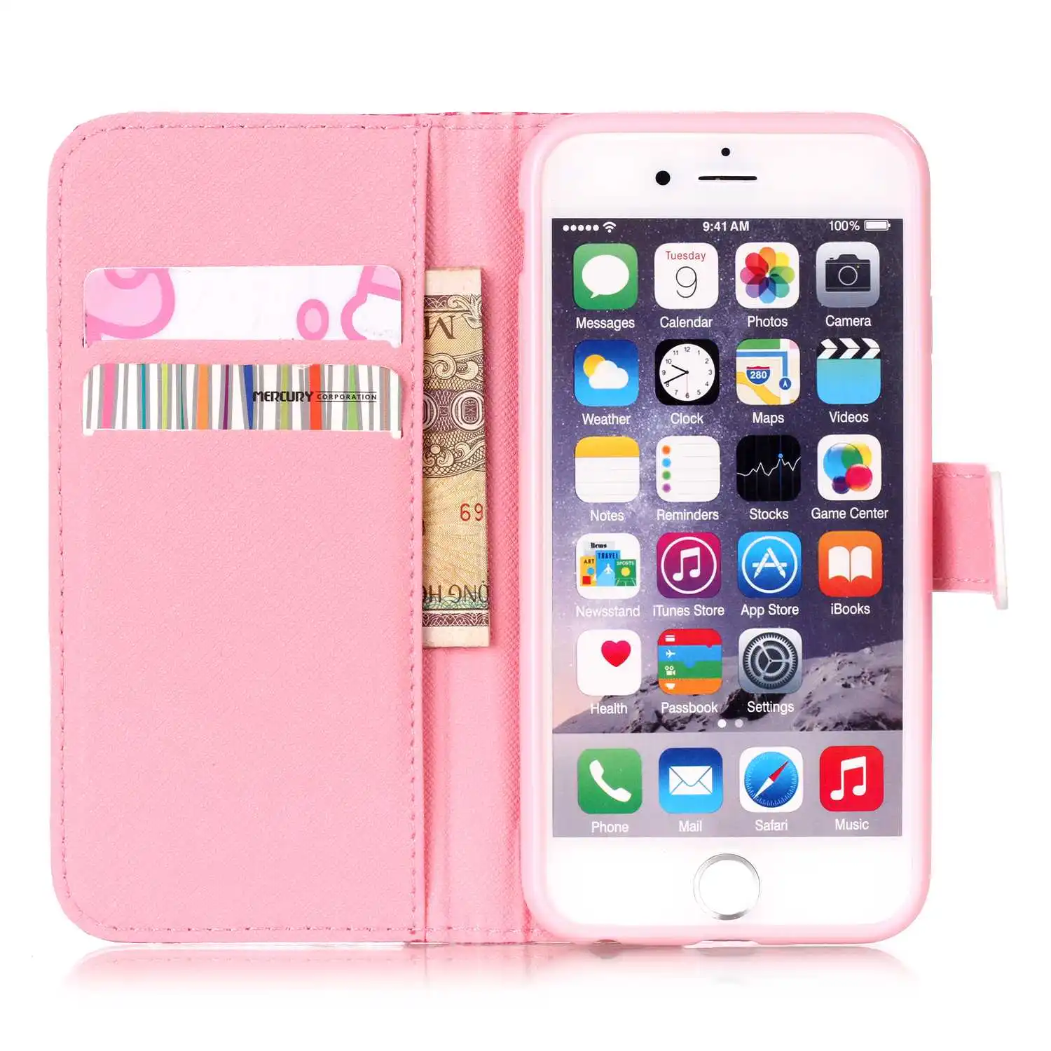 Fashion Pink Flower Flip Case For iPhone 6 6S Plus 7 7 Plus 5 5S SE Stand Wallet PU Leather + Soft TPU For iPhone 7 7Plus Cover