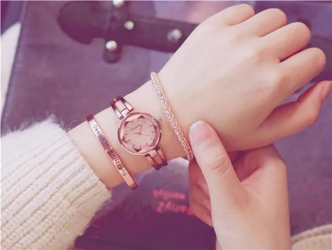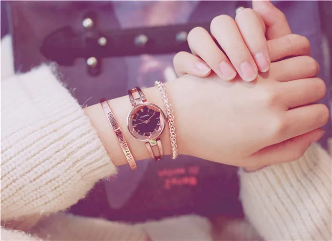 Fashion Rose Gold Lady Wristwatch Luxury Simple Women Bracelet Watches Casual Stylish Female Gift Clock Link Chain Ulzzang Brand