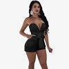 Fashion Strapless Belted Playsuits Sleeveless Off Shoulder High Waist Bacless Women Sexy&club Jumpsuits Lace-up Sheath Rompers