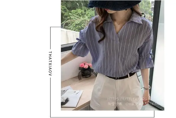 Fashion striped OL blouse women shirt casual plus size 4XL ladies tops office lady women blouse shirt blusas femininas 0440 40