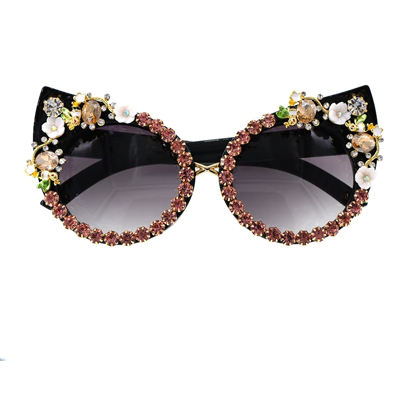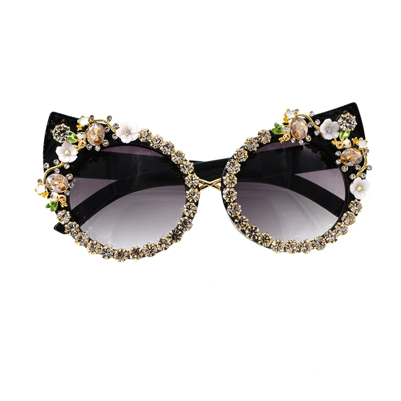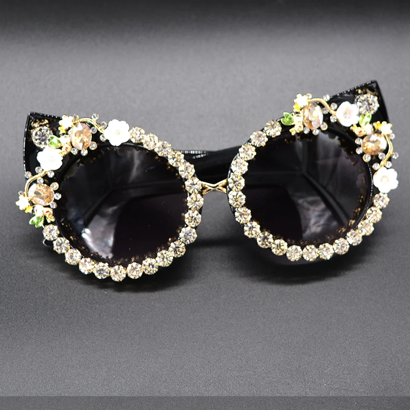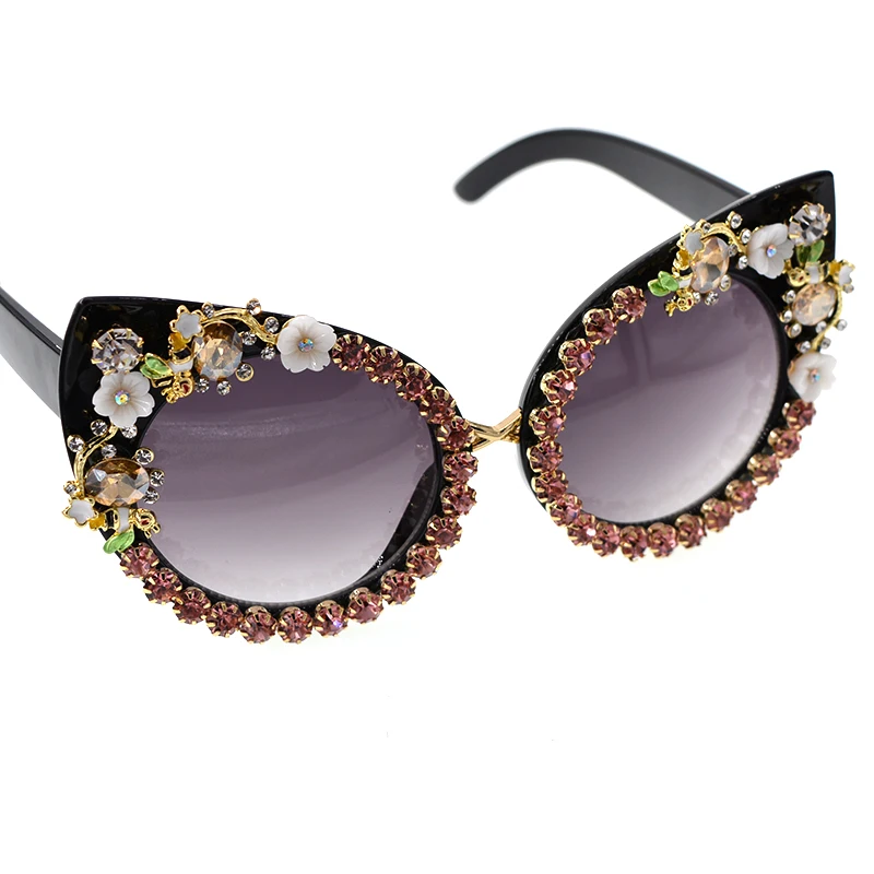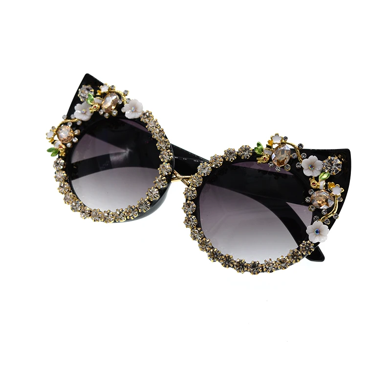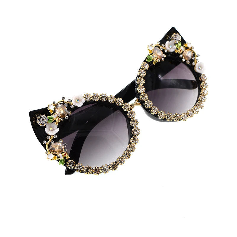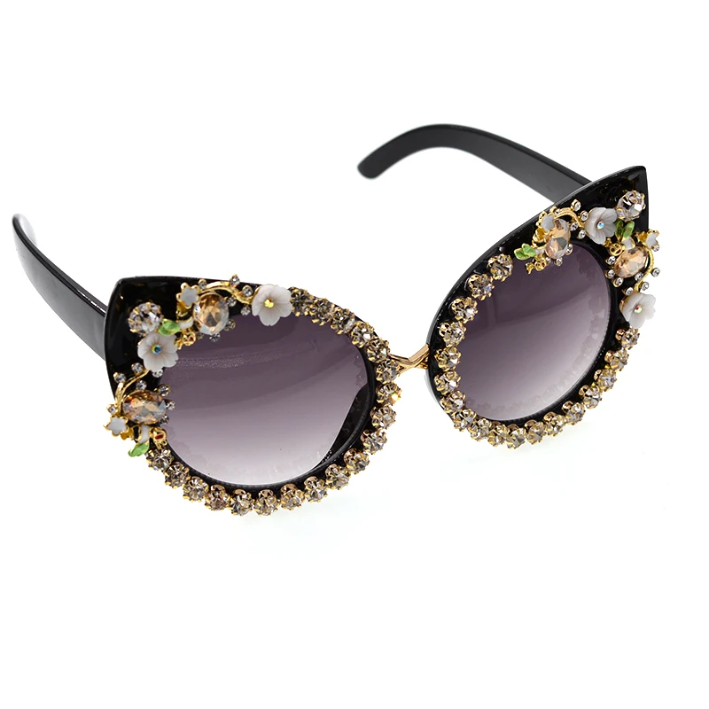 Fashion Sunglasses Women Luxury Brand glasses Metal jewel with Rhinestones Decoration Cat Eye Sunglasses Vintage Shades Oculos