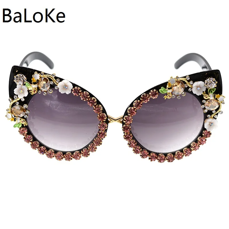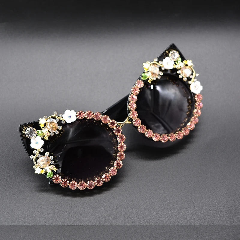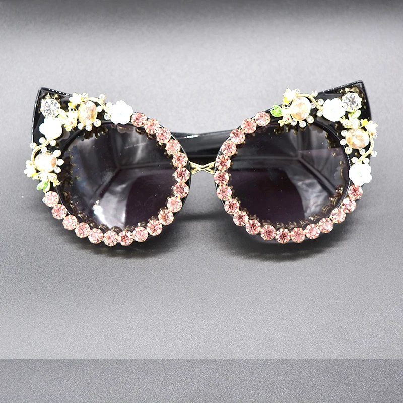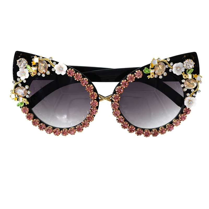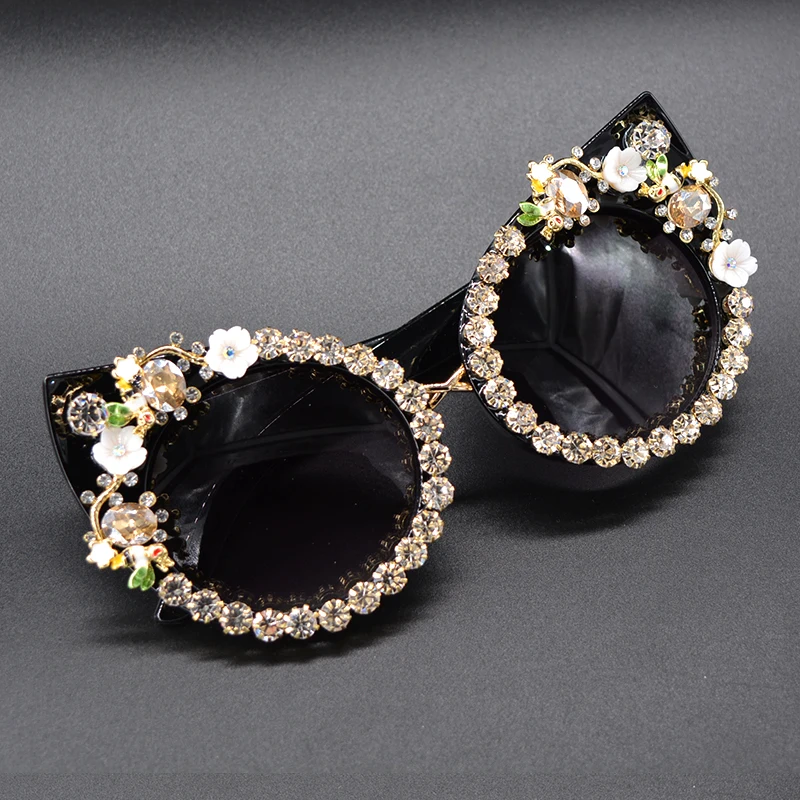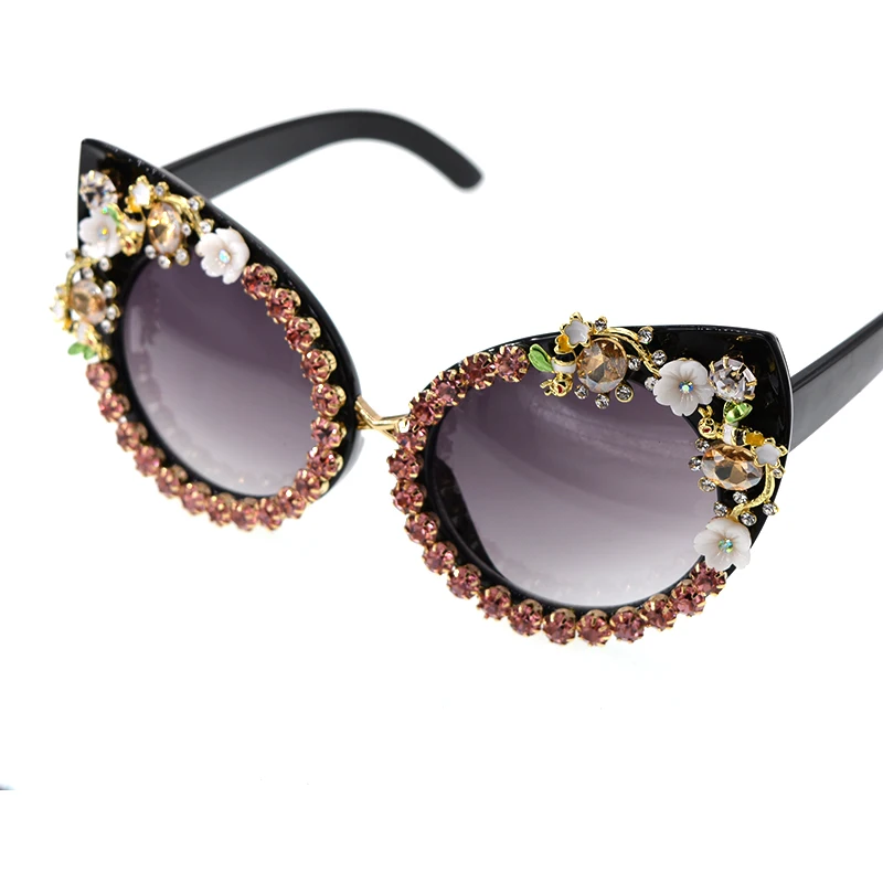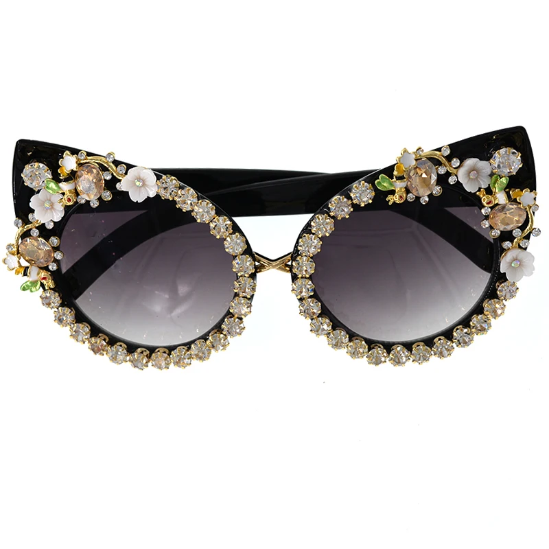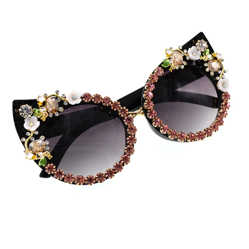 Fashion Sunglasses Women Luxury Brand glasses Metal jewel with Rhinestones Decoration Cat Eye Sunglasses Vintage Shades Oculos