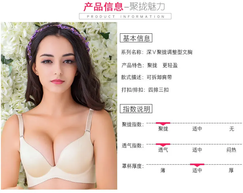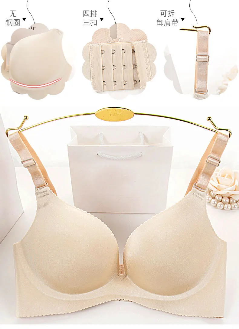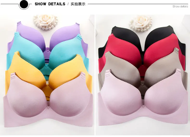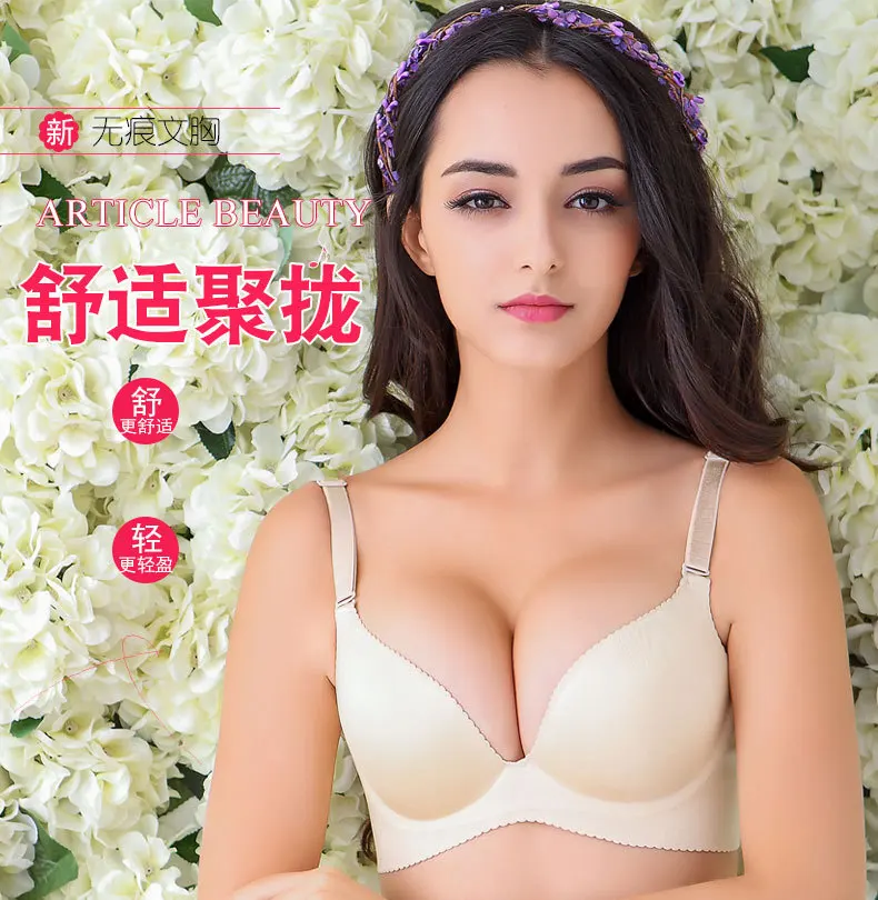 Fashion super Push Up Bra Deep V gather breast bra One-Piece Wireless Simple Seamless Bra big size 32 34 36 38 women bra