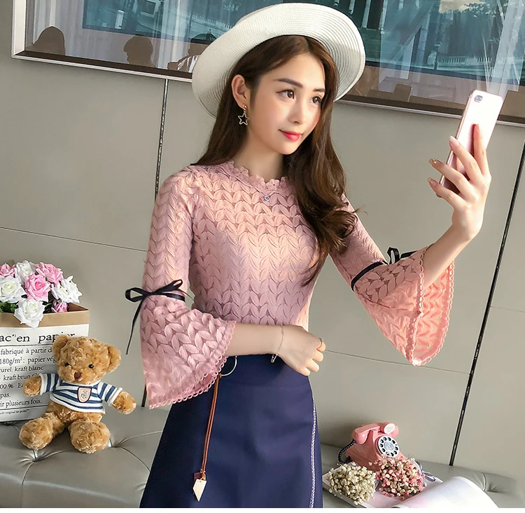 fashion woman blouses 2018 lace chiffon women’s shirt summer blouse hollow floral female clothes sweet top female blusa 0852 40