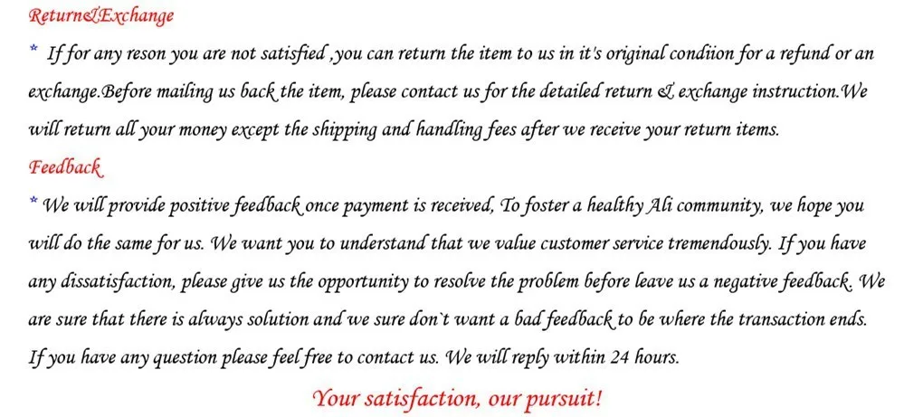• If you did not receive the product within the guaranteed time( 45 days not including 2-5 day processing) you can request a refund or a reshipment.