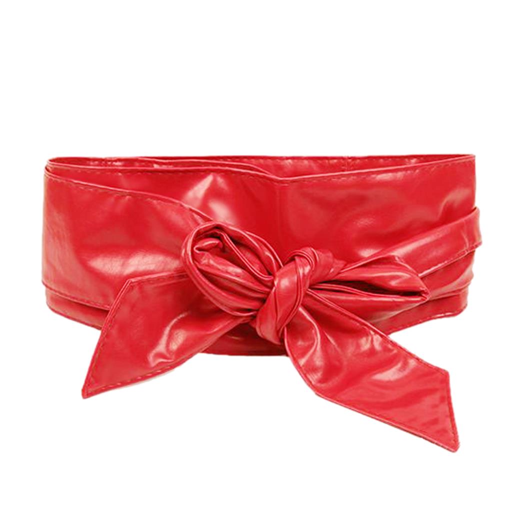 Fashion Women Elegant PU Leather Wrap Around Bowknot Bind Wide Waistband Corset Cinch Belts All-match Wide Female Belt