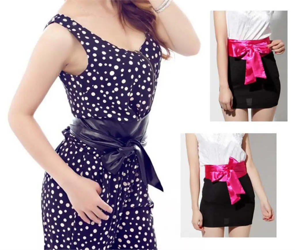 Fashion Women Elegant PU Leather Wrap Around Bowknot Bind Wide Waistband Corset Cinch Belts All-match Wide Female Belt