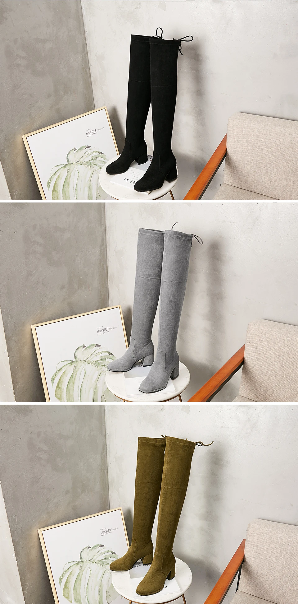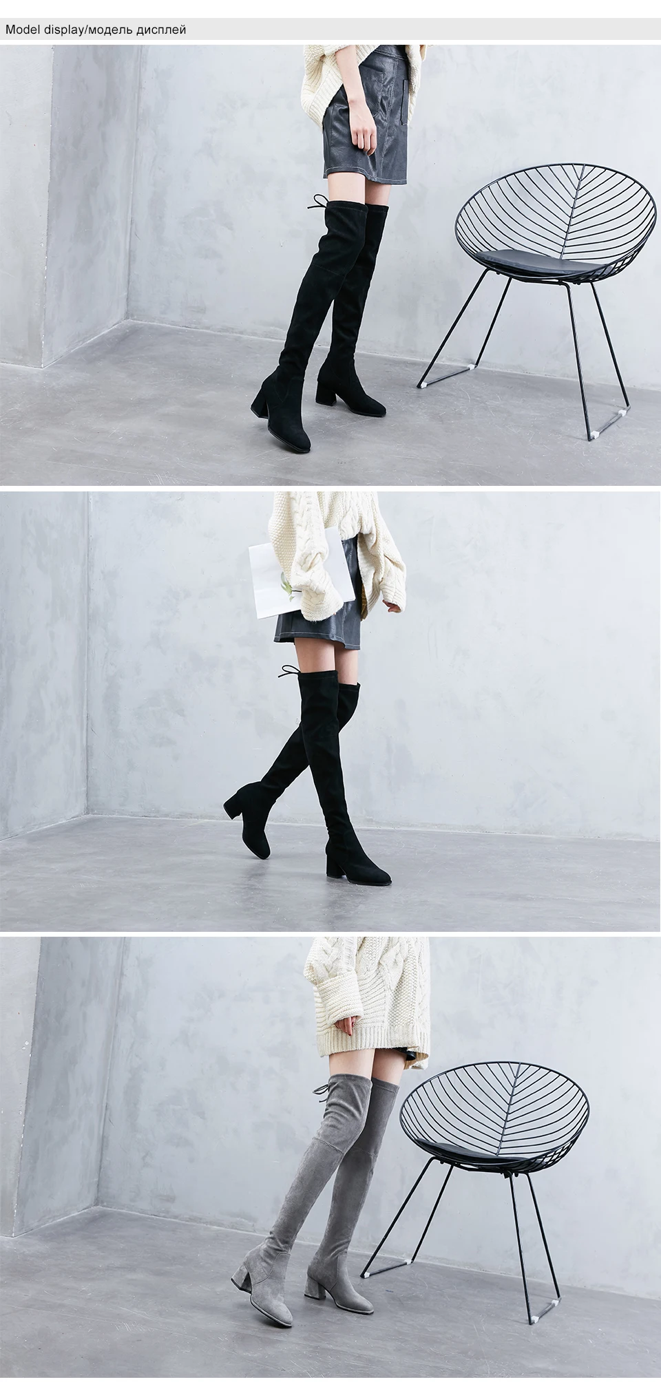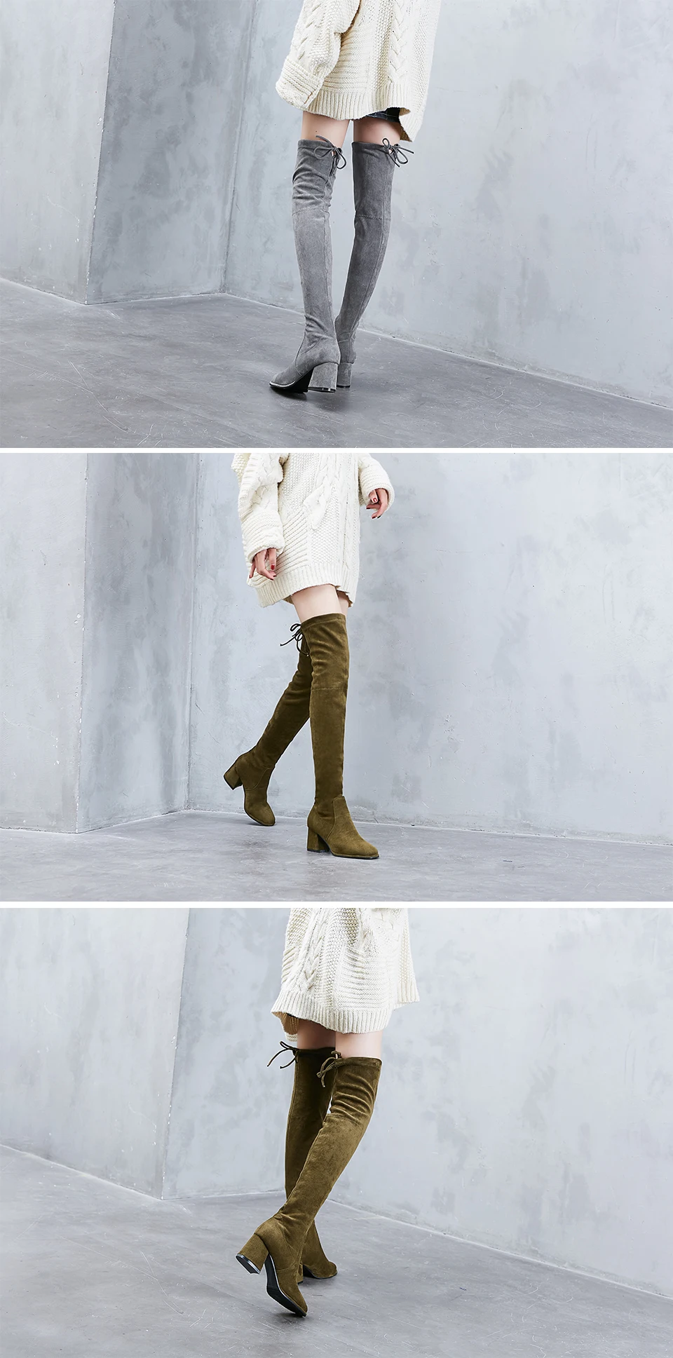 Fashion Women High Boots Thick Heels Winter Casual Shoes Over The Knee Square Toe Boot Female Autumn Black Ladies Shoe Plus Size