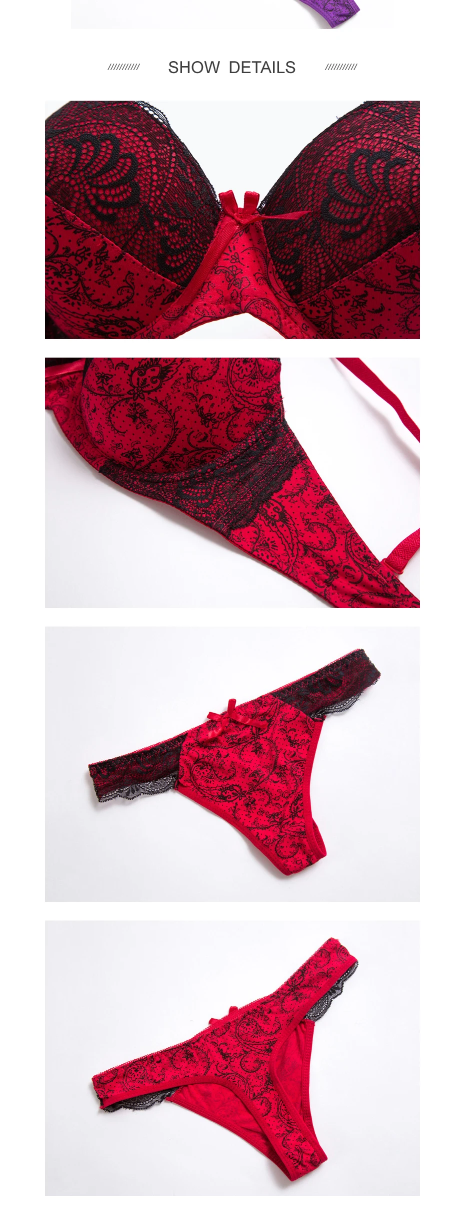 Name:Fashwell Sexy Push Up Lace Women Underwear Panty Set Set Intimates Embroidery Floral Women Bra Brief Sets
