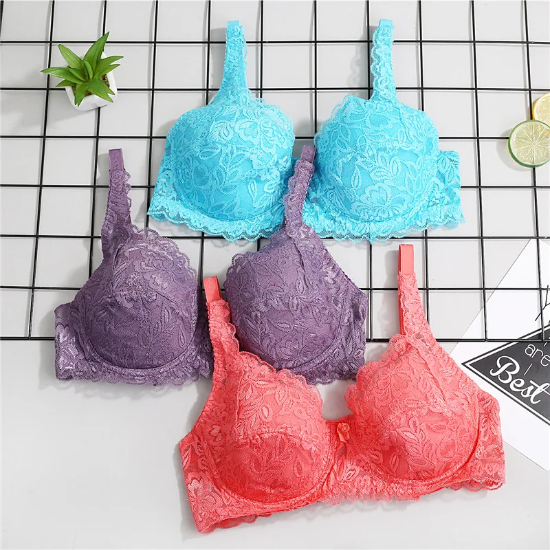 Fatimu Fashion Women Sexy Lace Bra Deep V Push Up Brassiere Shaping Padded Bras Underwear Embroidery Lingerie Plus Size Bras