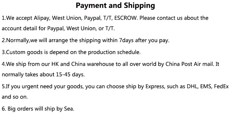 Packages from our warehouse in China will be shipped by ePacket or EMS depending on the weight and size of the product. Packages shipped from our US warehouse are shipped through USPS.