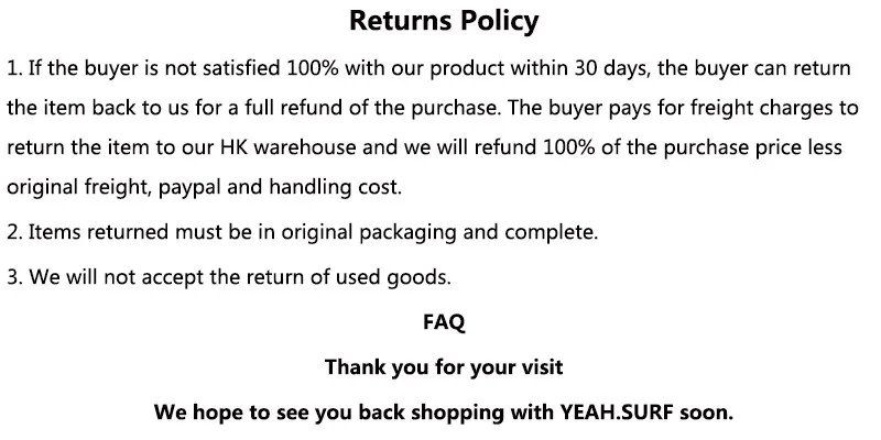 Please do not send your purchase back to us unless we authorise you to do so.