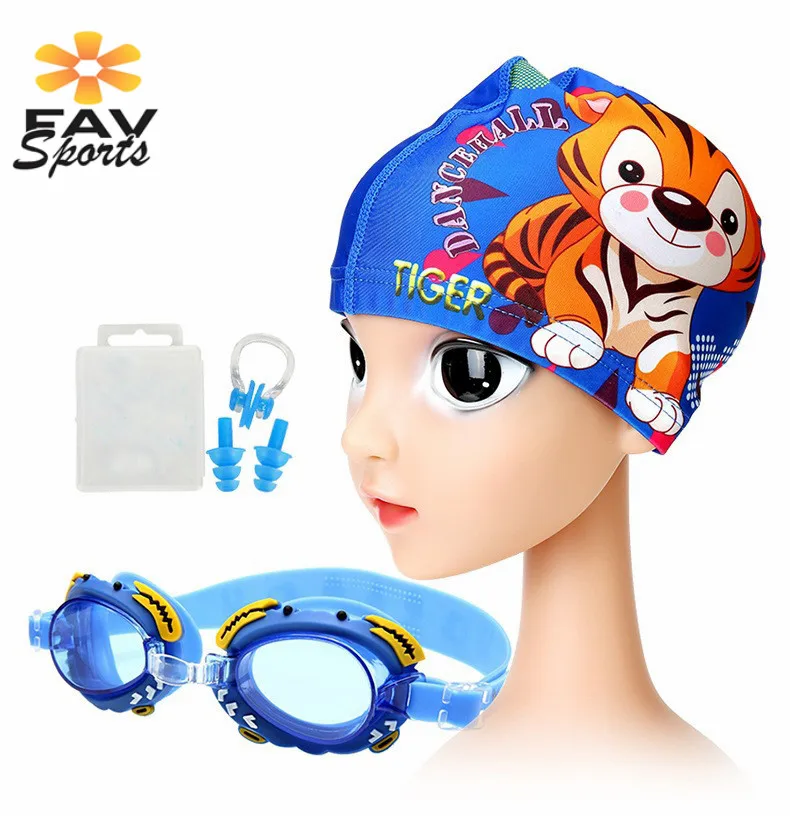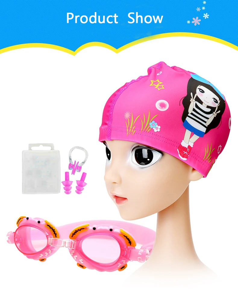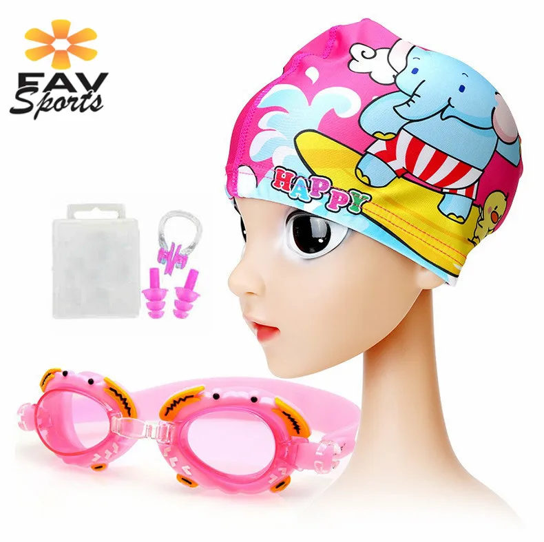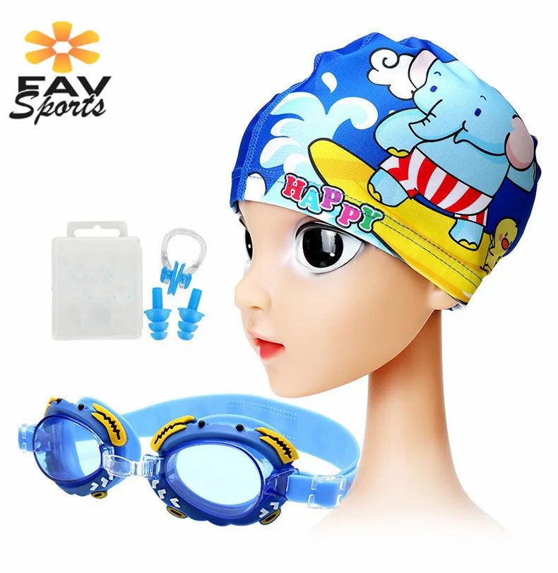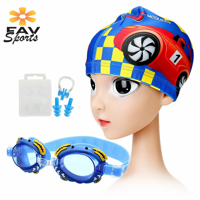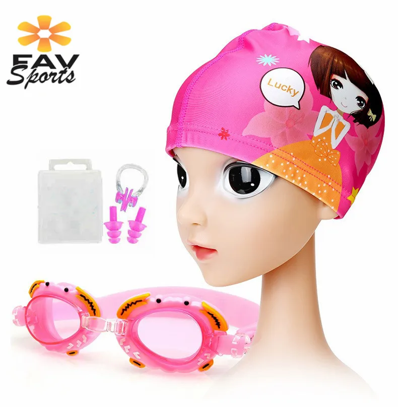 FAVSPORTS Pool Swim Glasses Kids Silicone Swimming Goggles Waterproof Anti-fog Eyewear for Girls Boys with Free Earmuff and Cap