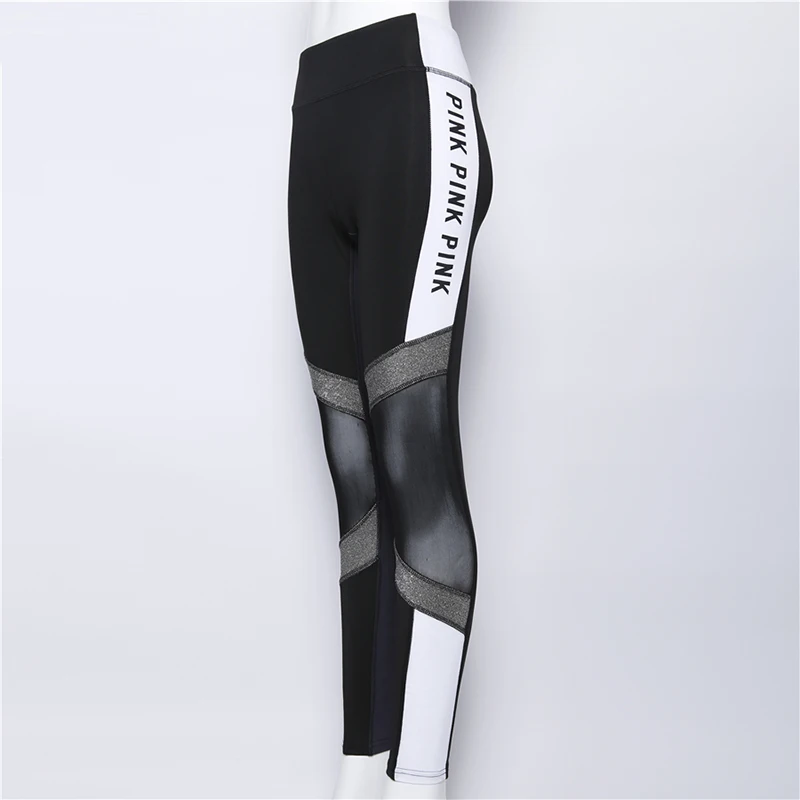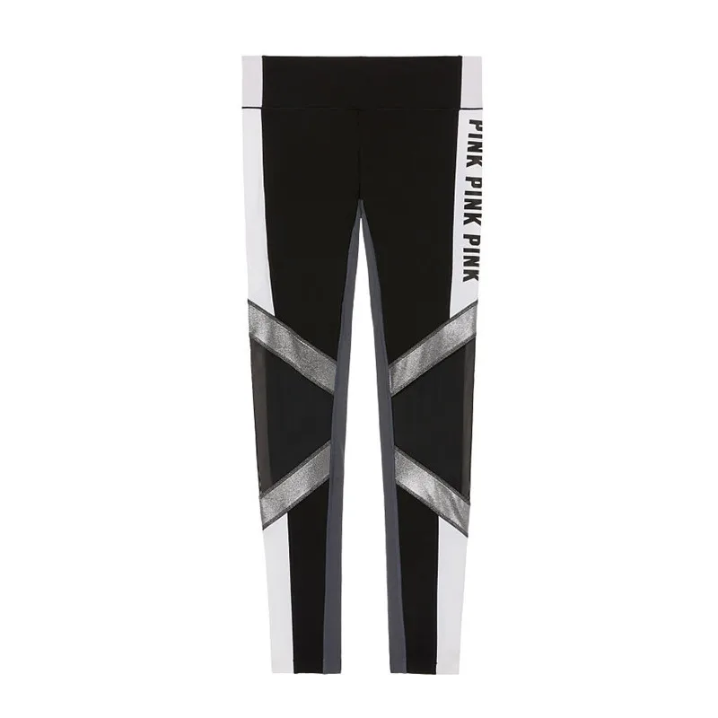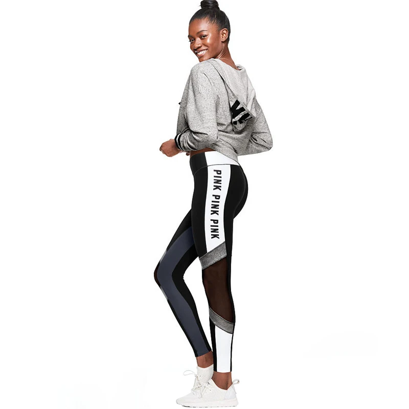 FCCEXIO 2018 Women Love Pink Letter Print Workout Leggings Women High Waist Slim VS PINK Slim Fitness Legging Sporting Legging