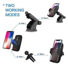 Fully Automatic and One-hand Operation: Equipped with advanced infrared motion sensors and motors, this fast wireless car charger’s clamps will open and close automatically once your phone approaches. You can put your phone on the wireless charger car mount to hold and charge your phone simply with one hand. Touch the metal button on the car phone charger’s left side, the clamps will automatically open for you to take your phone out with only one hand.