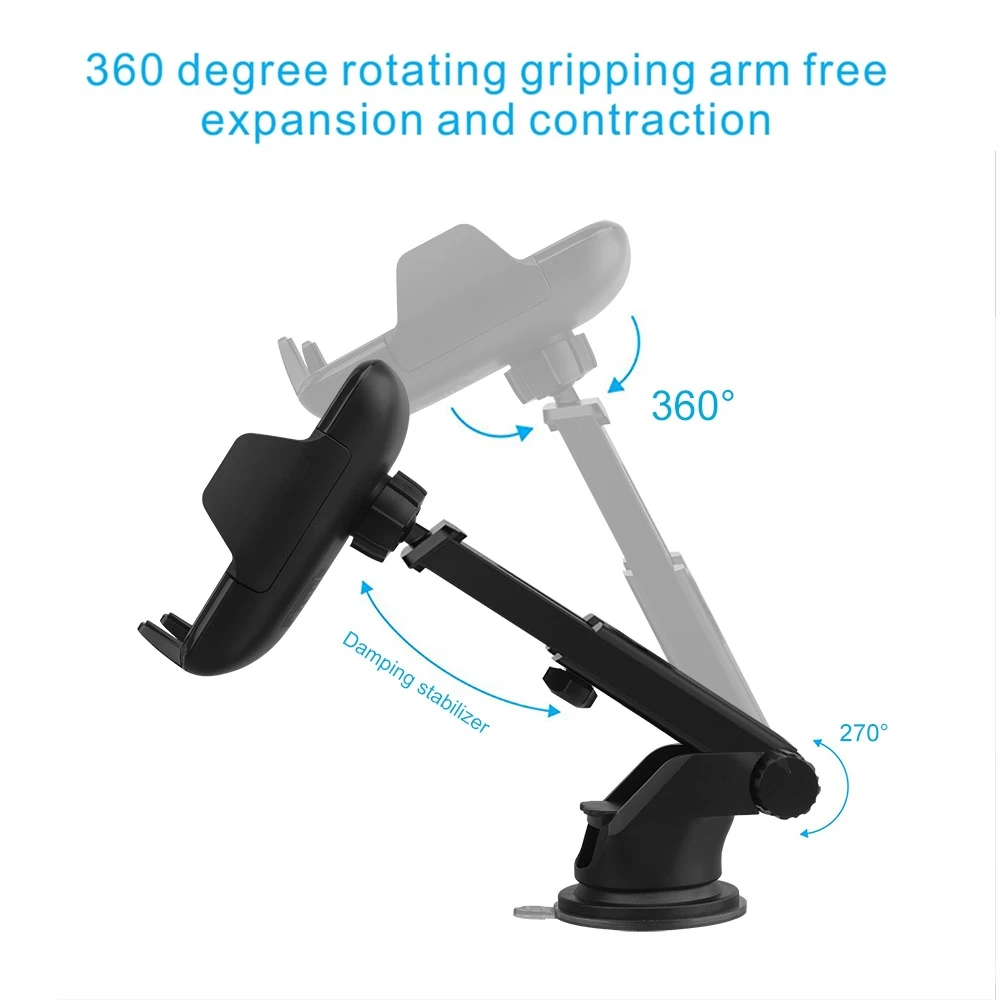 Two Ways of Installation: Designed to suit every individual’s preferences, the suction mount provides driving-platform installation and the vent clamp provides air outlet installation. It’s better to use air outlet installation in summer, because the car air conditioner can cool the charger down. The suction mount and vent clamp both have 360 degree rotation angle, making it more convenient for driver to adjust cell phone to the best viewing angle.