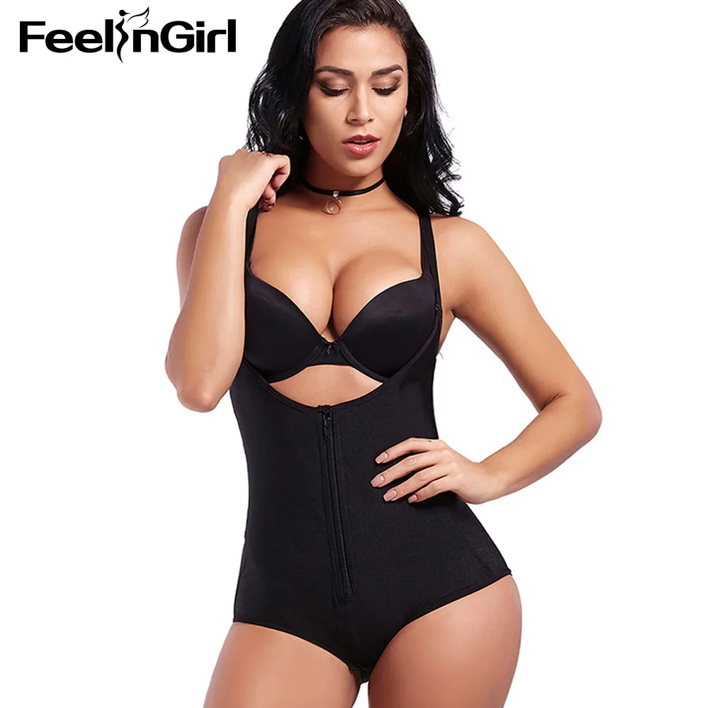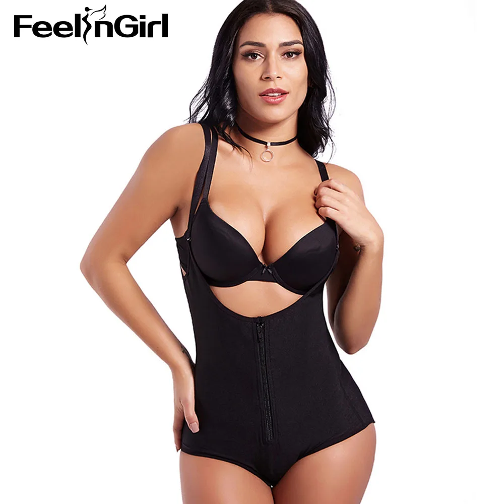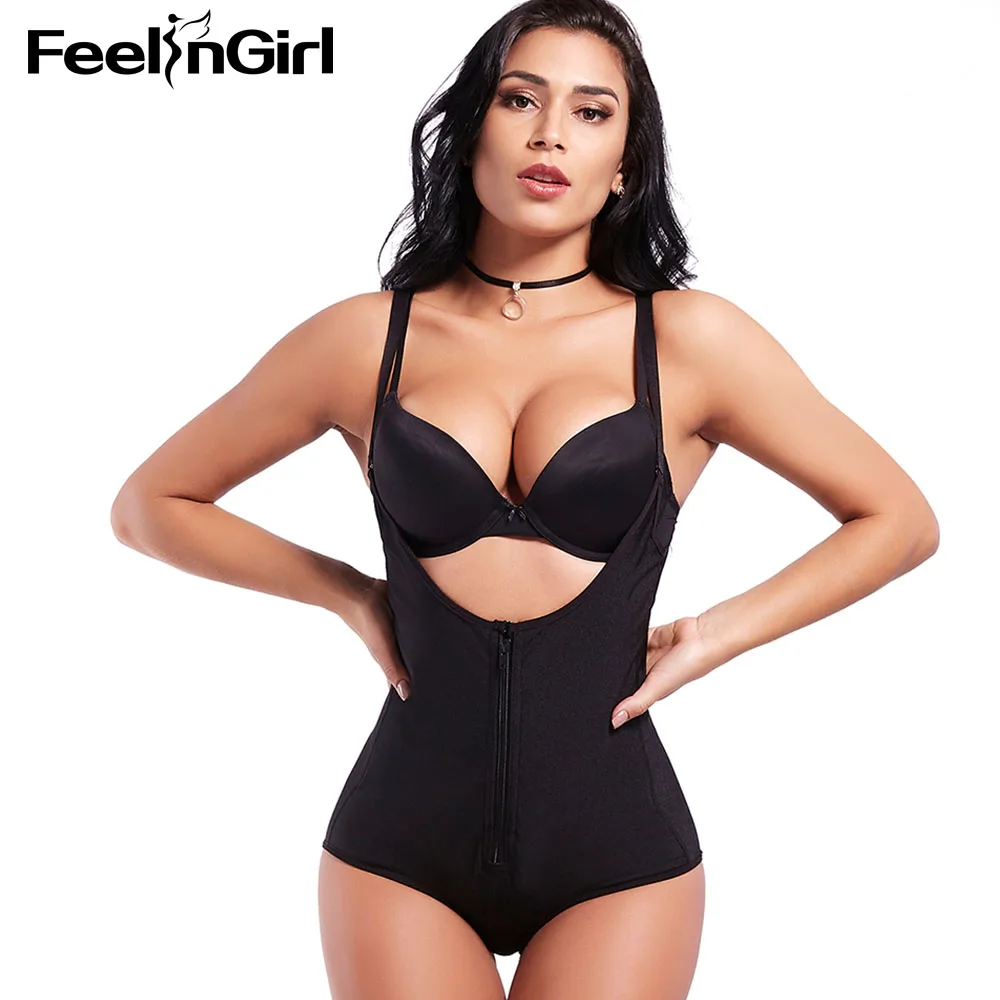 FeelinGirl S-3XL High Quality 100% Latex Women’s Seamless Firm Control Shapewear Open Bust Bodysuit Body Shaper Nude -C5