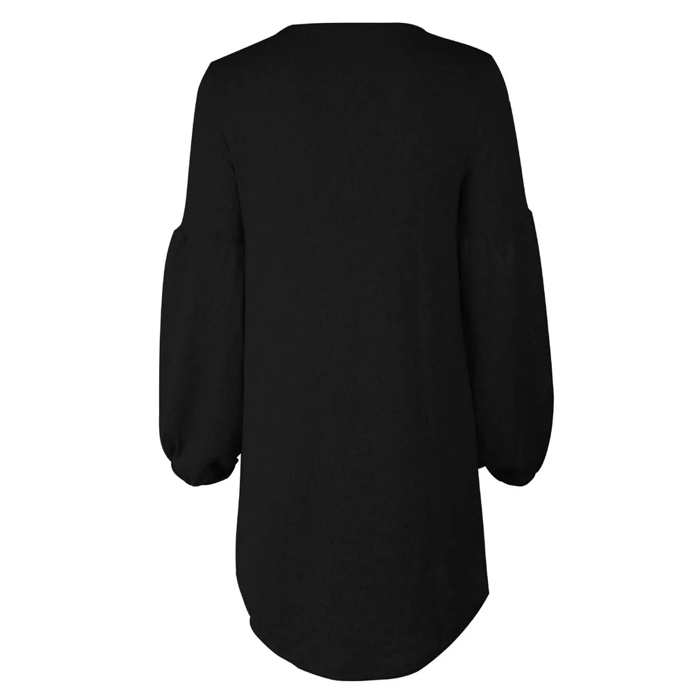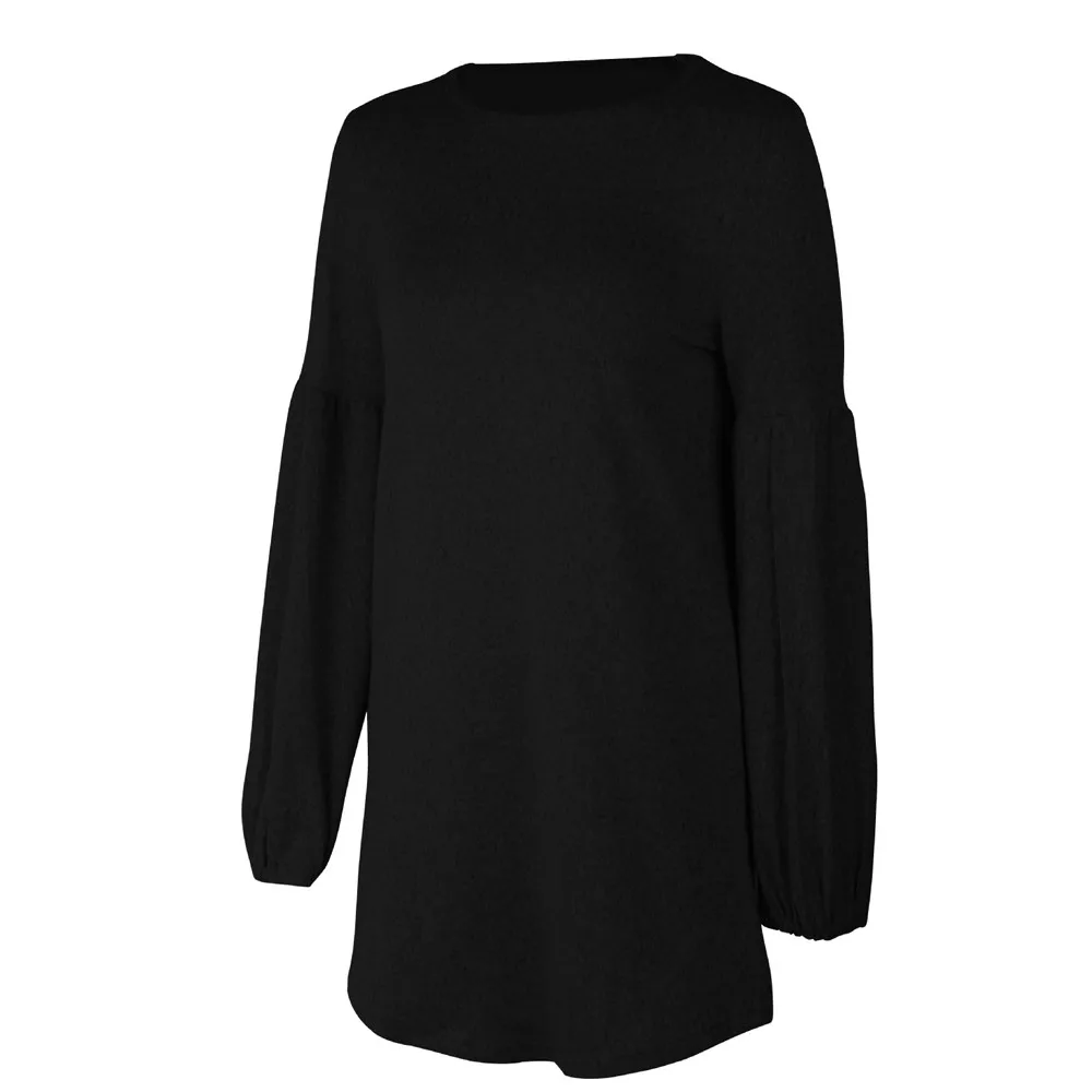 FeiTong Autumn Dress Women Fashion Solid Long Sleeve O-Neck Puff Sleeve Knitted Vestidos De Fiesta Woman Dress 2018