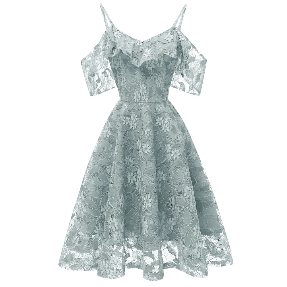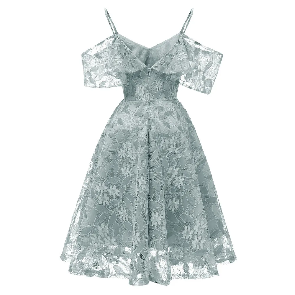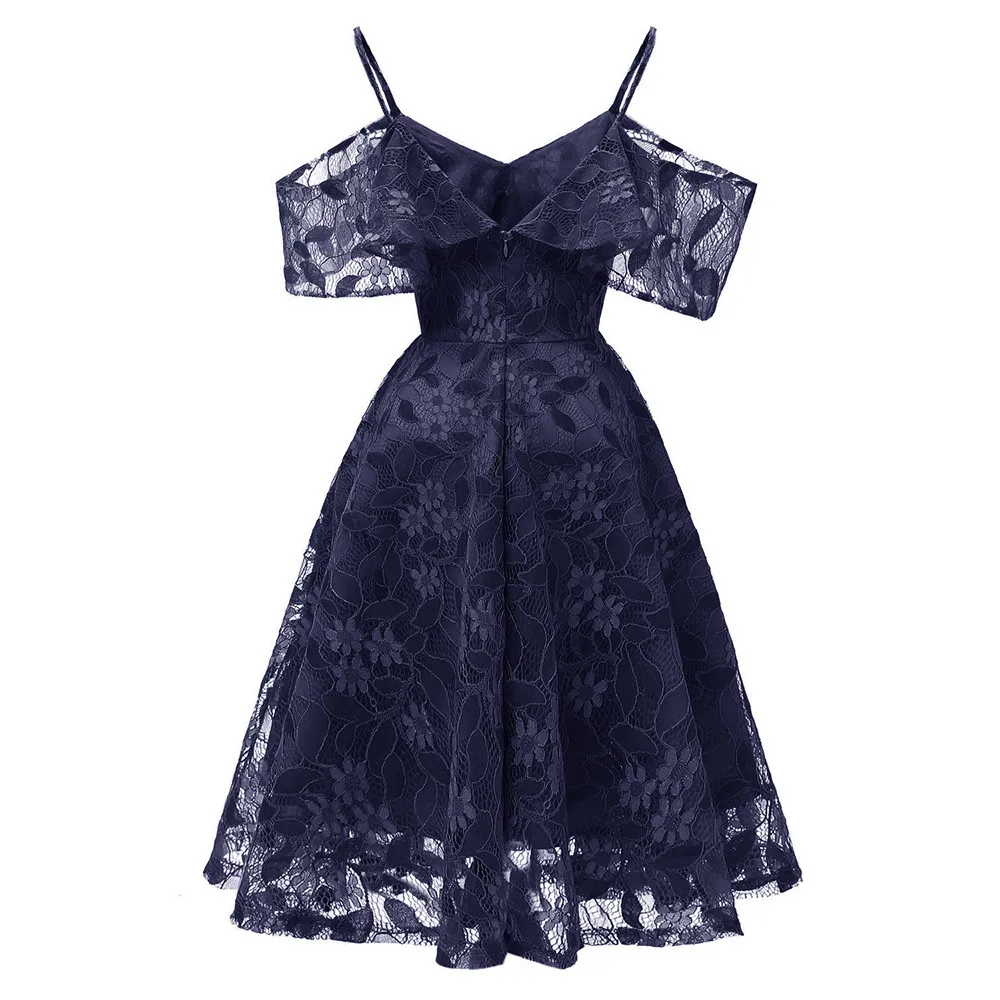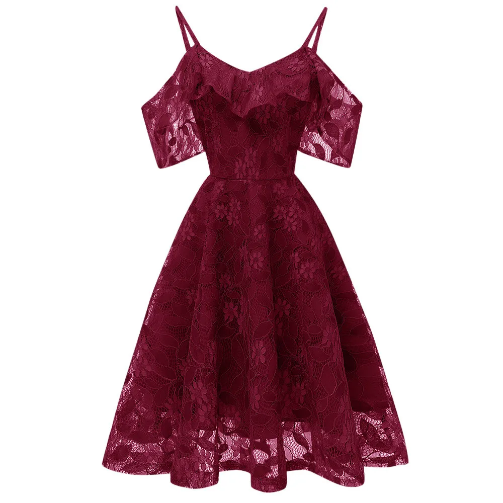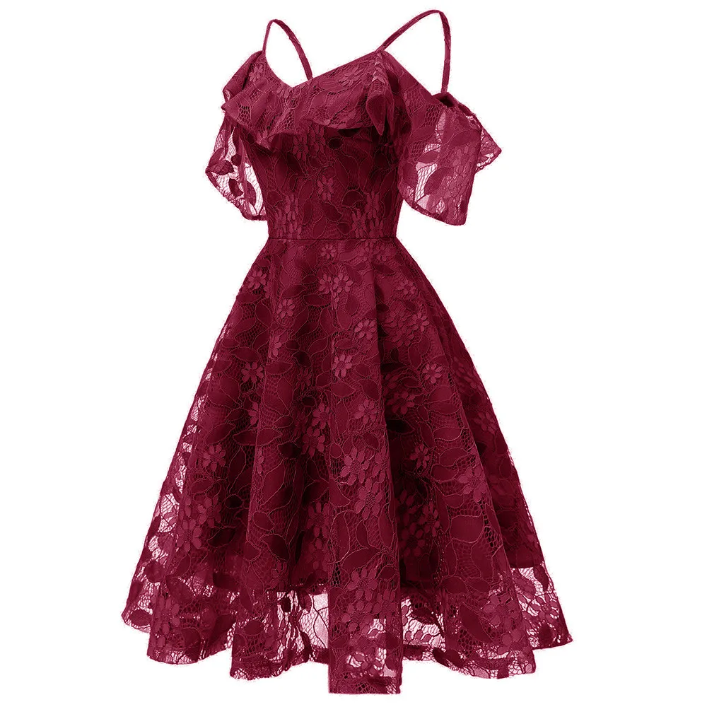 Women Vintage Princess Floral Lace Cocktail Neckline Party Aline Swing Dress