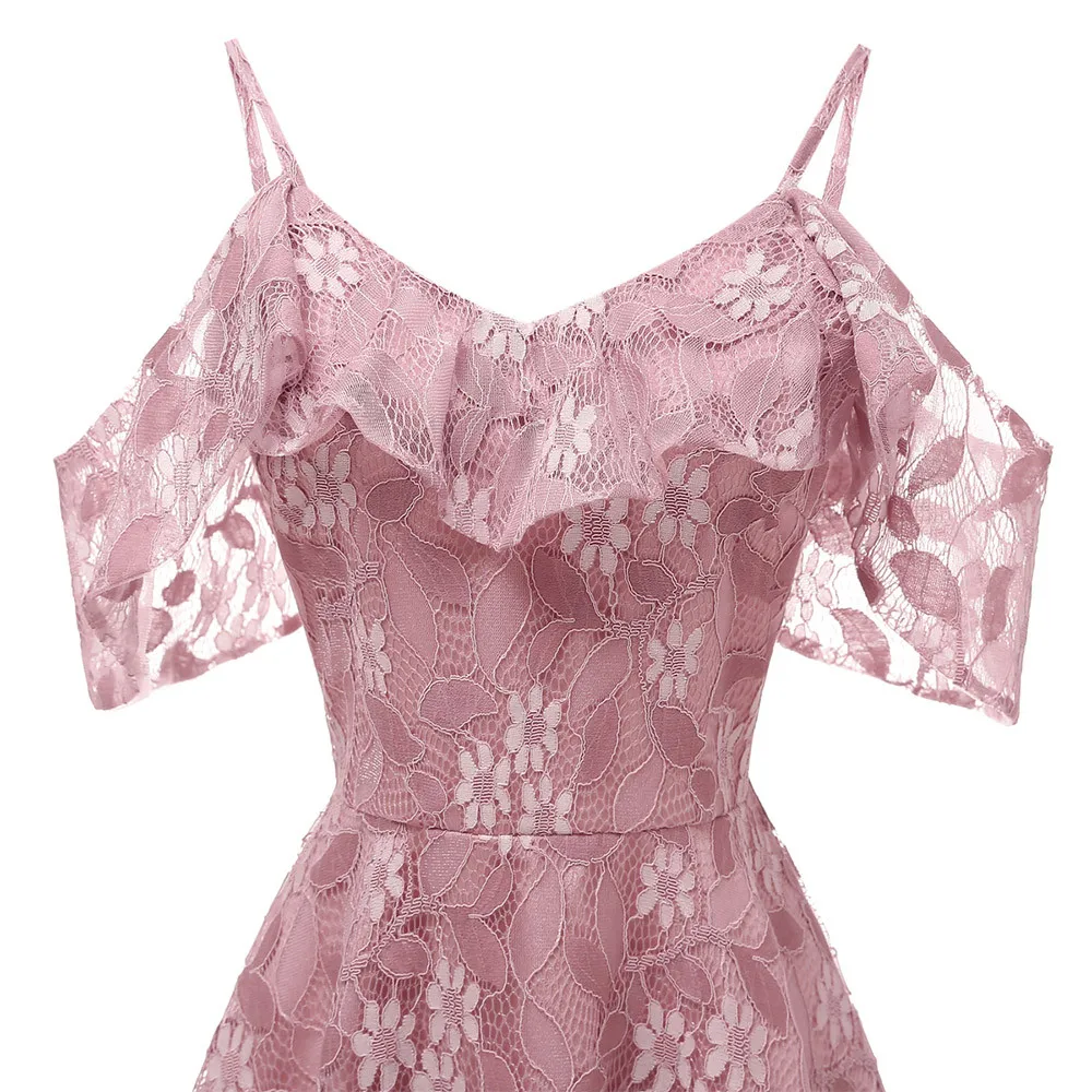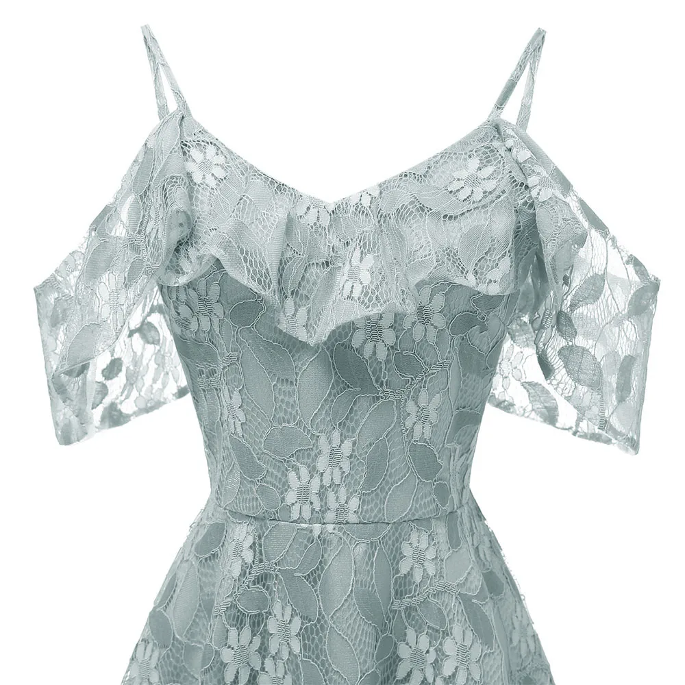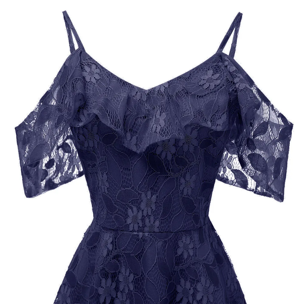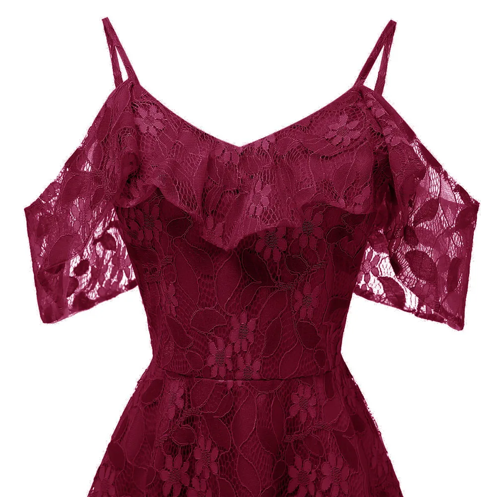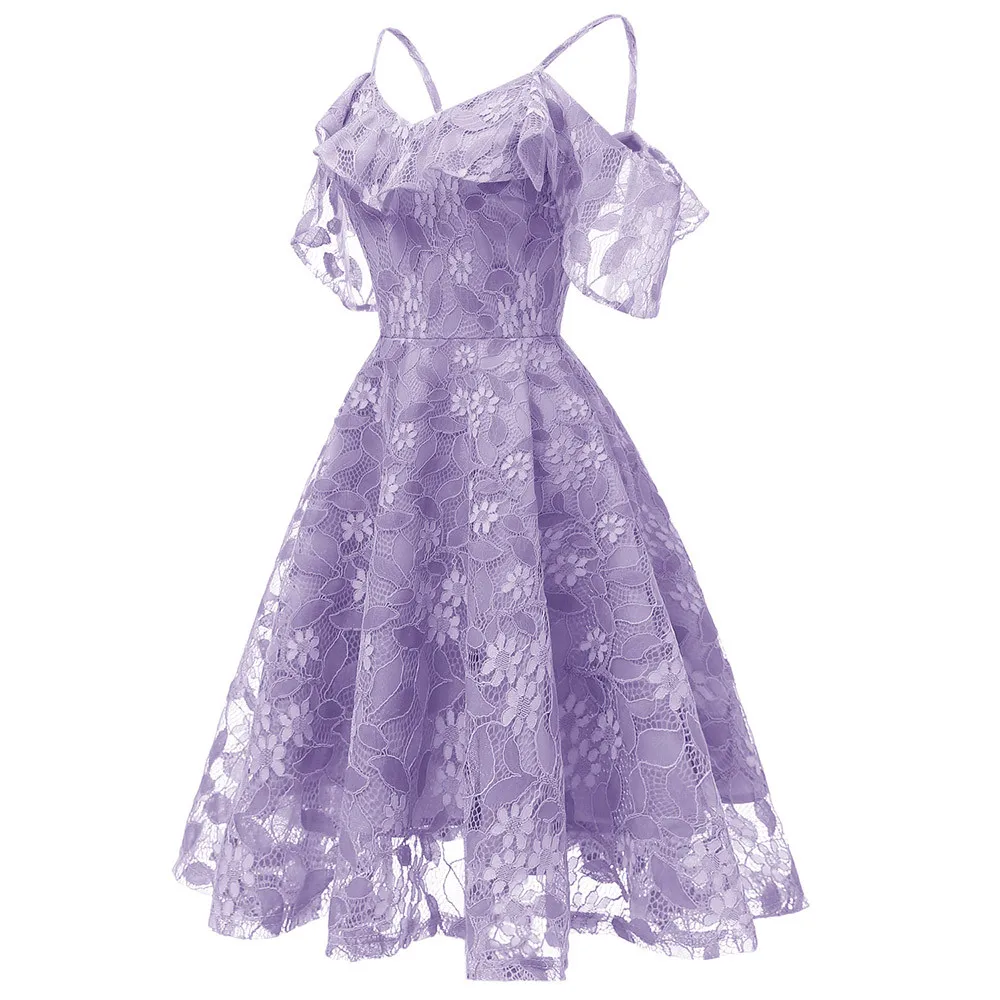 Women Vintage Princess Floral Lace Cocktail Neckline Party Aline Swing Dress