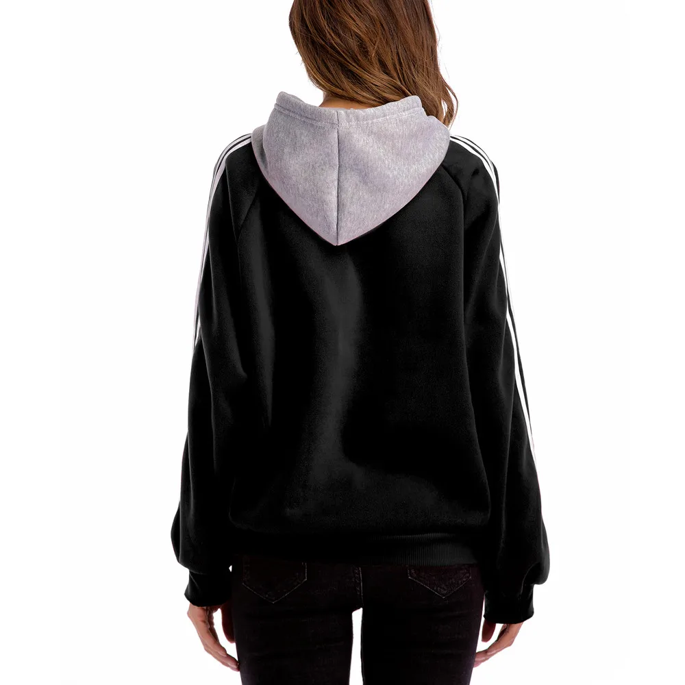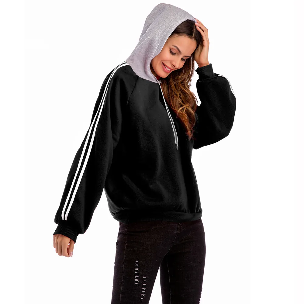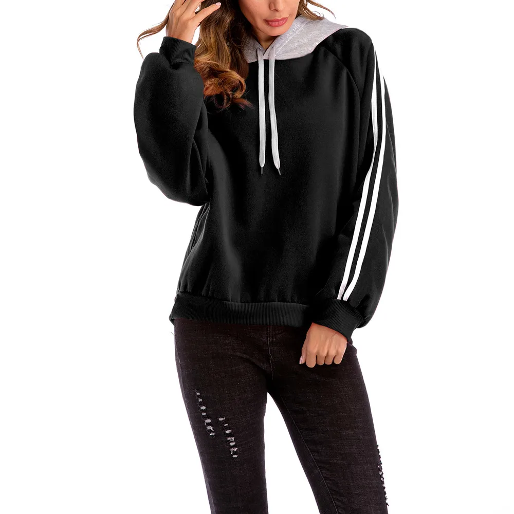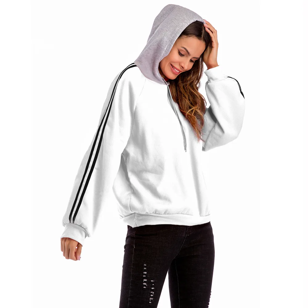 FeiTong Casual basic Sweatshirt White Striped Tape Drawstring Hoodie Pullovers Fall Women Clothing Long Sleeve Cute Sweatshirts