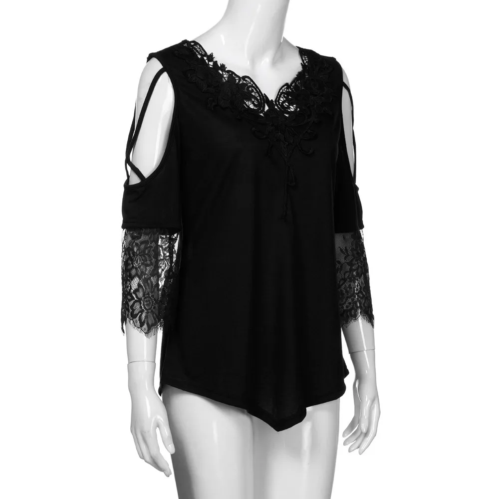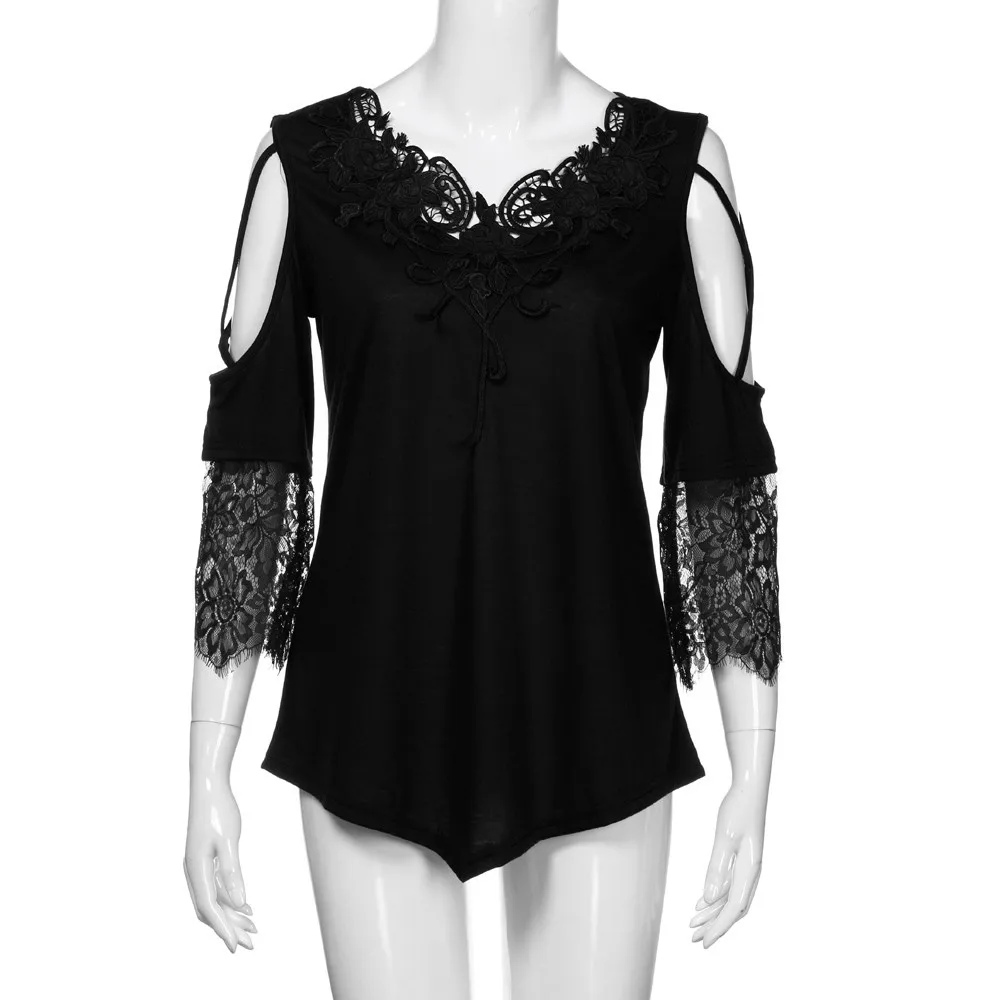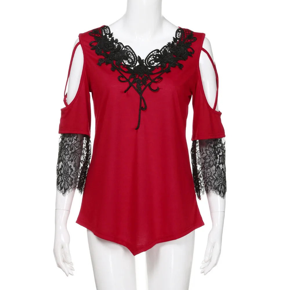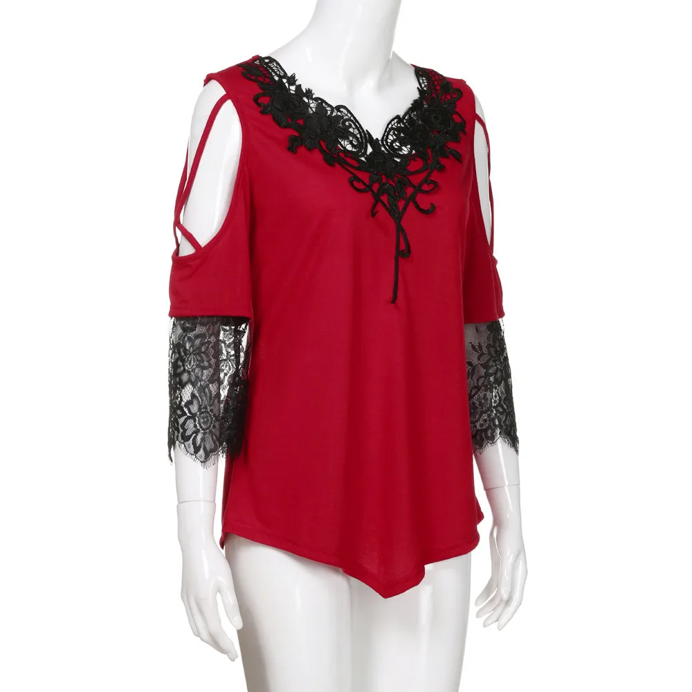Large Size Women Lace Off Shoulder T-Shirt Short Sleeve Casual Top Blouse