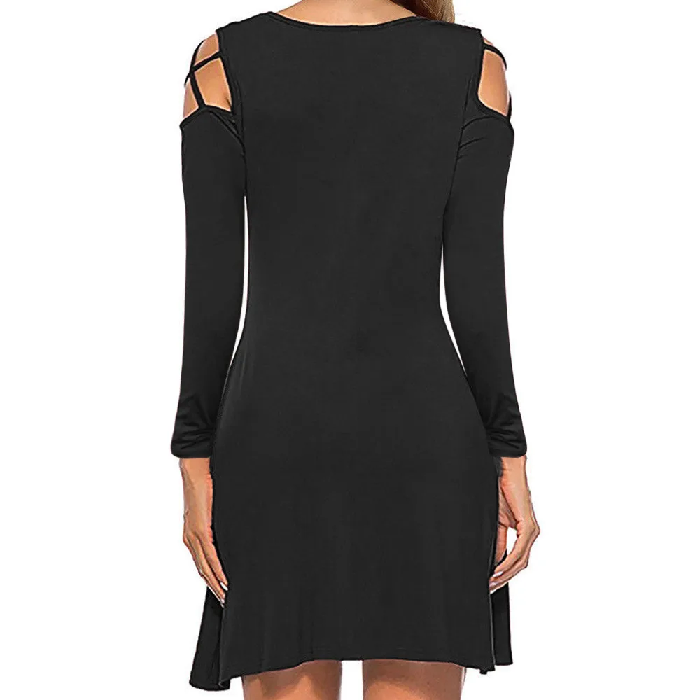 Women Ladies Cross Long Sleeve Off Shoulder Paty Dress Mini Dress