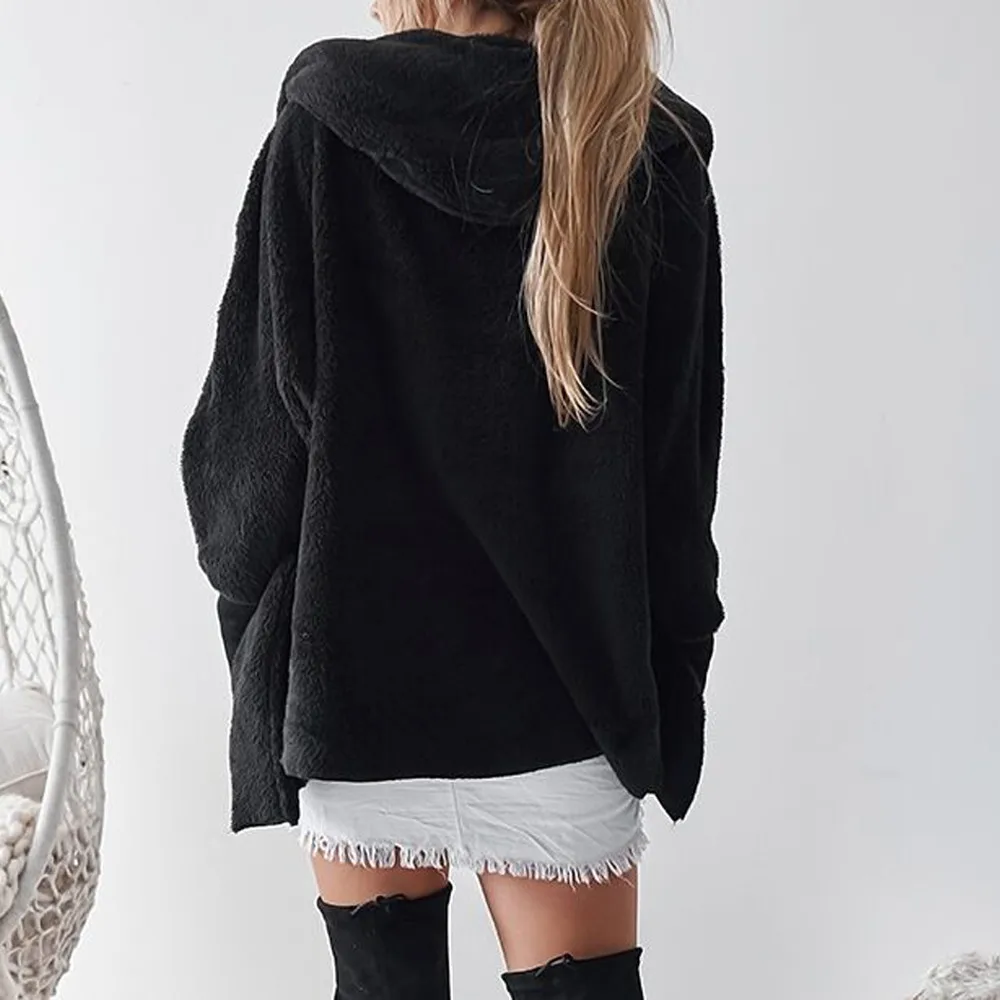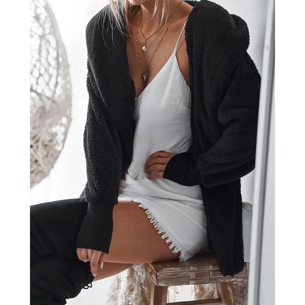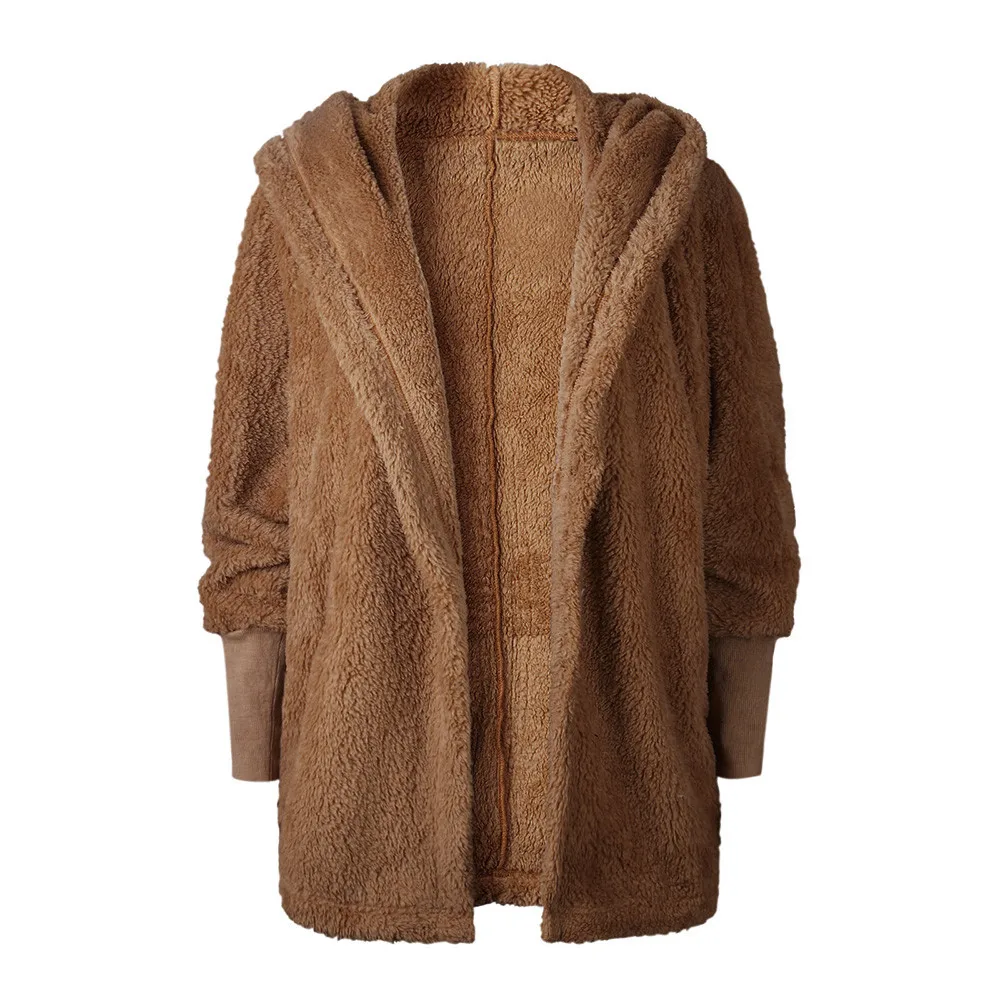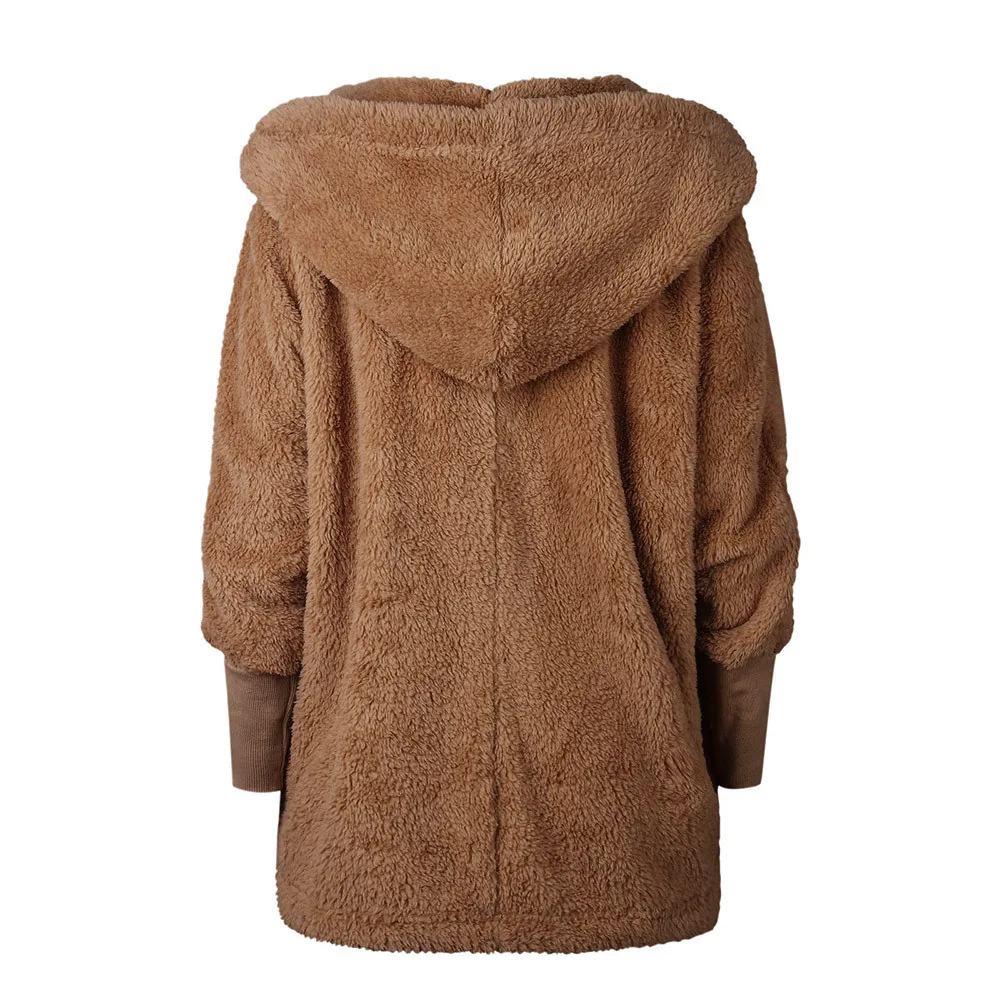 FeiTong Jacket Autumn Women Ladies Hooded Fluffy Coat Winter Jacket Cardigan Overcoat Jumper Windbreaker Outerwear Coats