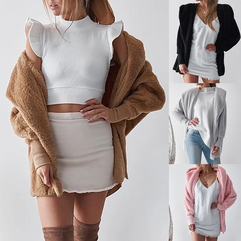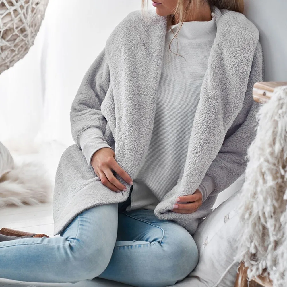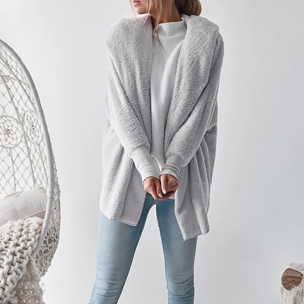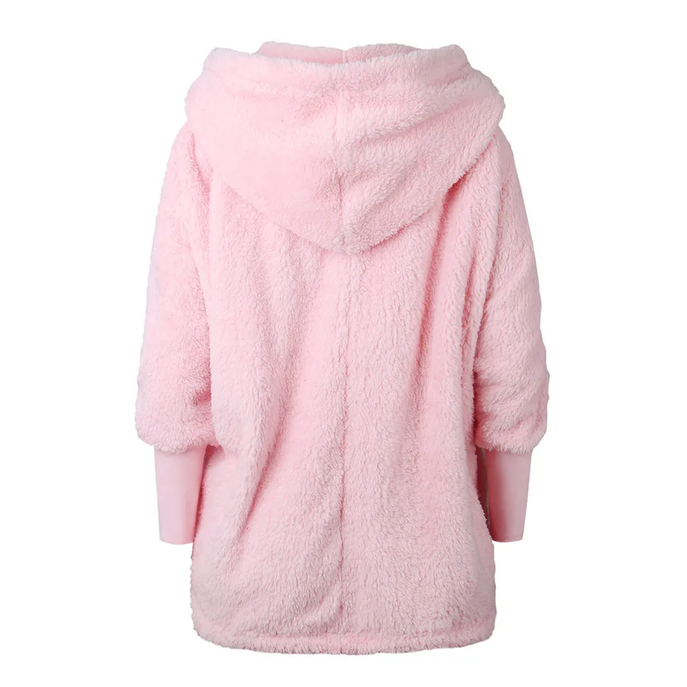 FeiTong Jacket Autumn Women Ladies Hooded Fluffy Coat Winter Jacket Cardigan Overcoat Jumper Windbreaker Outerwear Coats