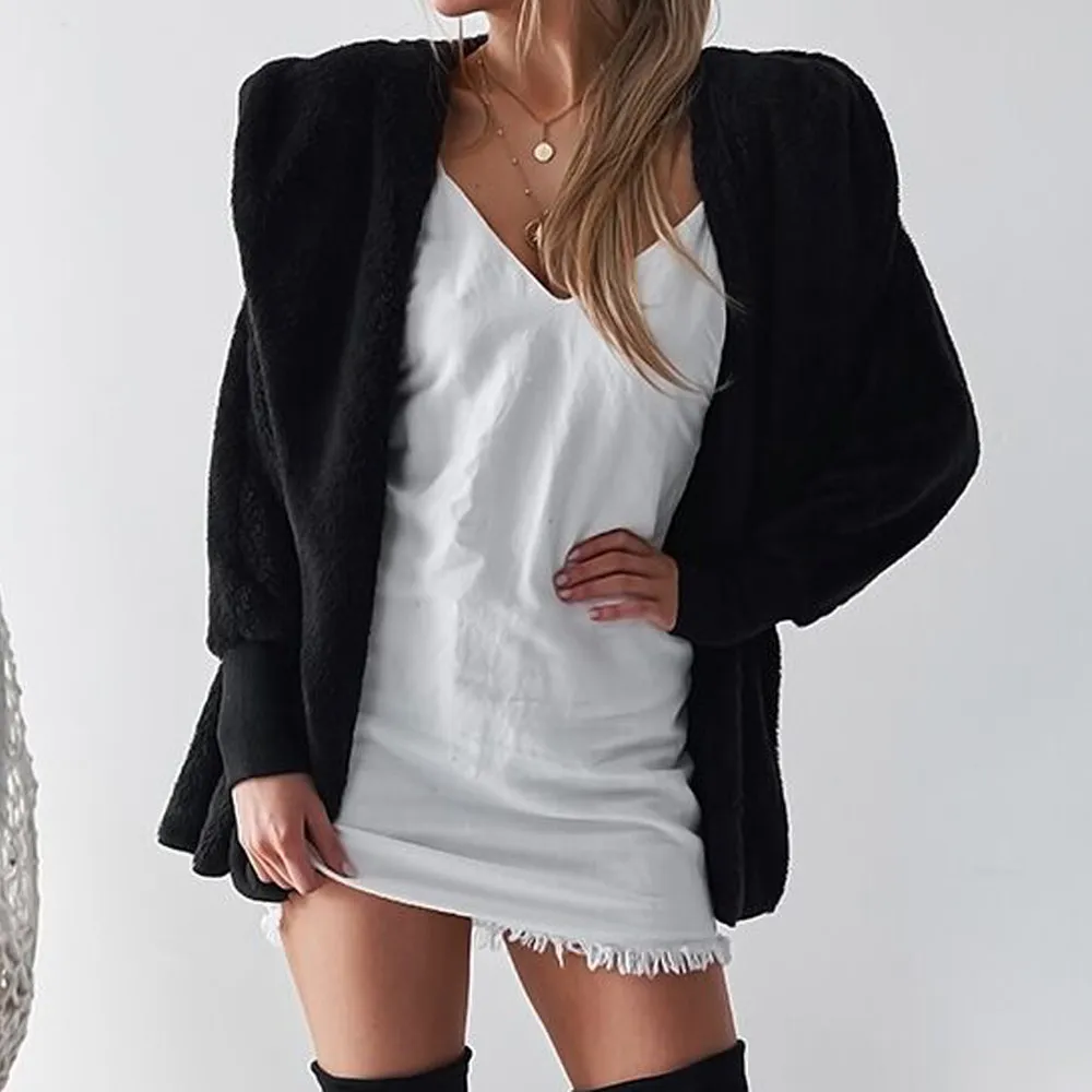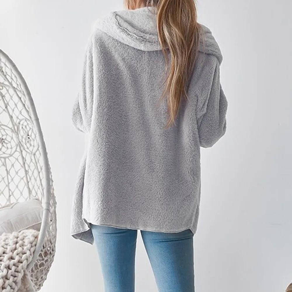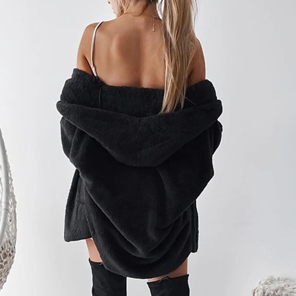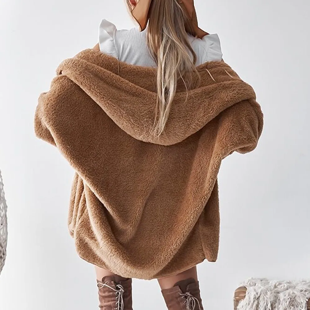 Womens Ladies Hooded Fluffy Coat Winter Jacket Cardigan Overcoat Outwear Jumper