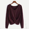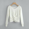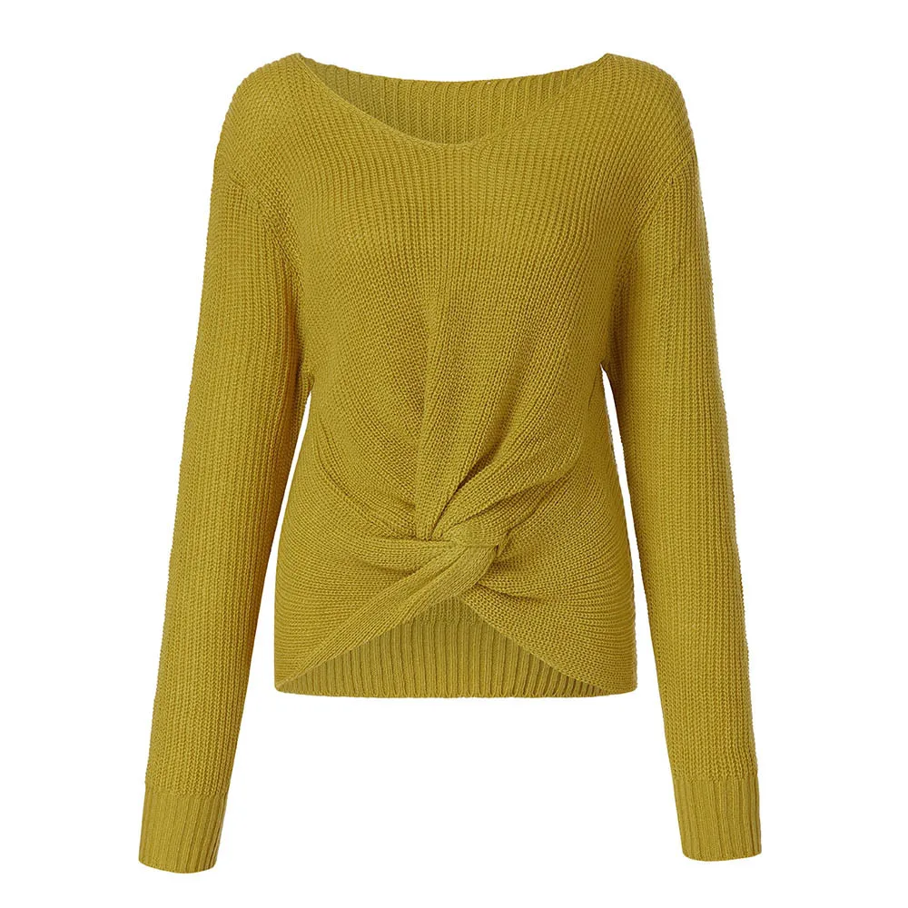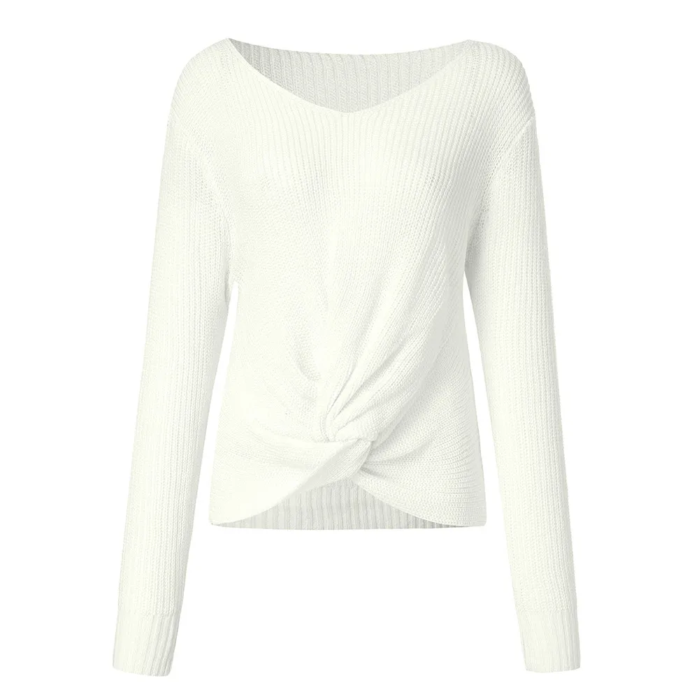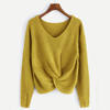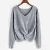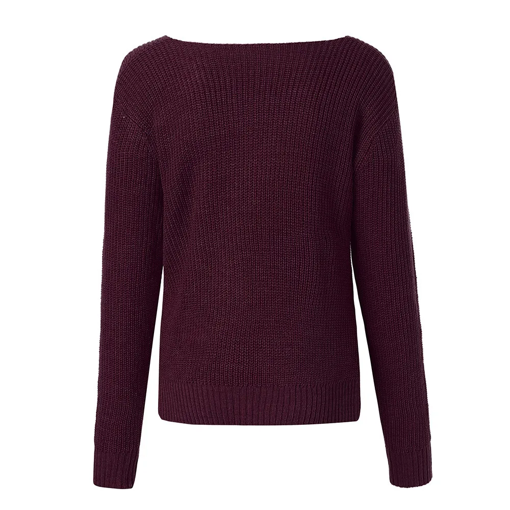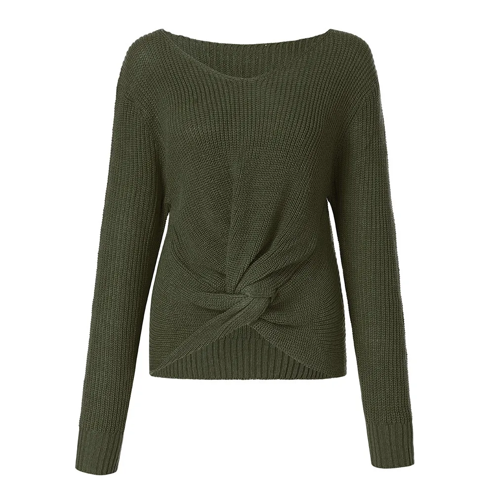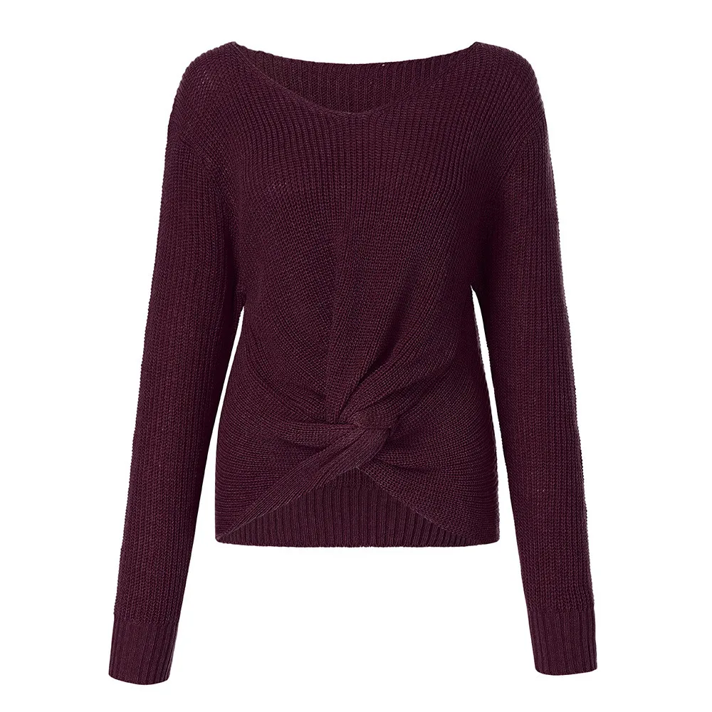 Women Long Sleeve Solid Color V-neck Sexy Cross Knotted Panel Sweater