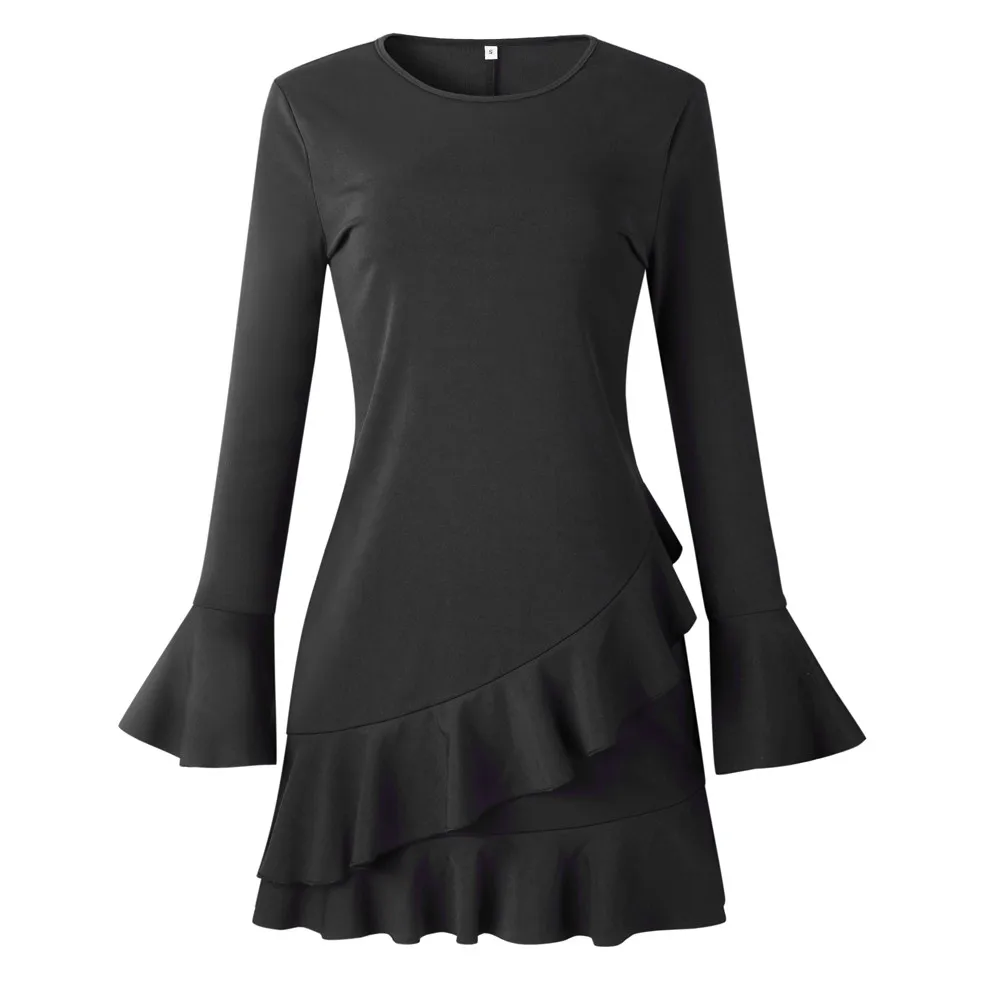 Women Ruffles Round Neck Dress Long Sleeve Evening Party Mini Dress